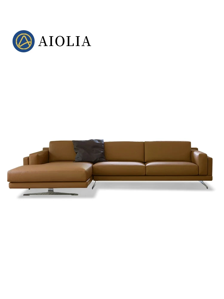 高級イタリアンレザーソファー - 本革使用の贅沢な貴妃型コンビネーション、広々としたヴィラや大きなフラットに最適!エレガントなエルメスオレンジで、上質な空間を演出します。