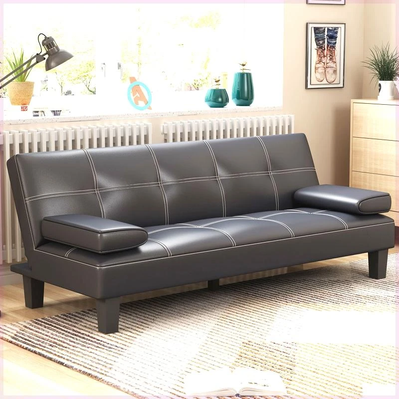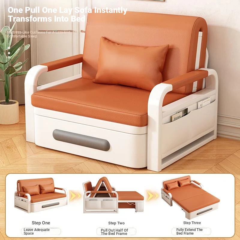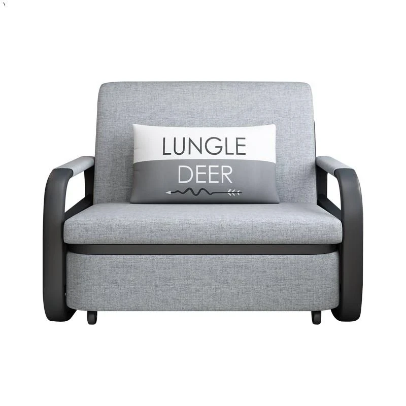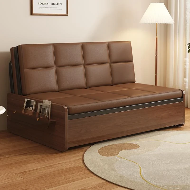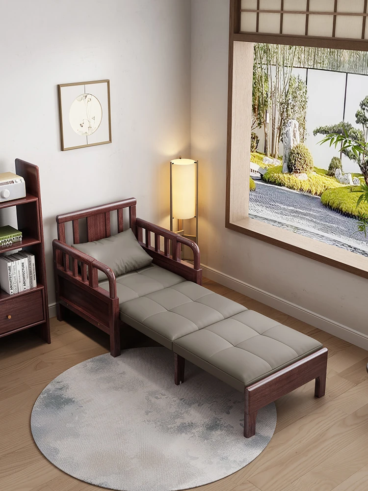 Solid Wood Sofa Bed in Golden Walnut - New Chinese Style, Perfect for Small Living Rooms, Featuring Storage Solutions and Elegant Design.