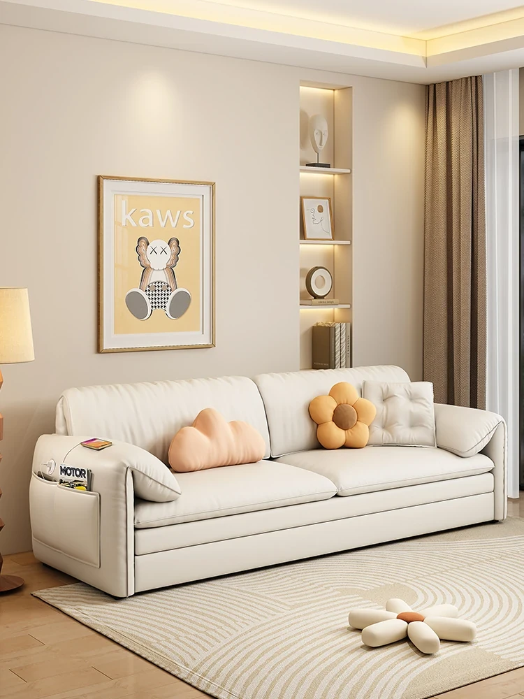 Modern Minimalist Genuine Leather Sofa for Small Spaces - Luxurious First Layer Cowhide, Italian Design, Perfect for Your Living Room