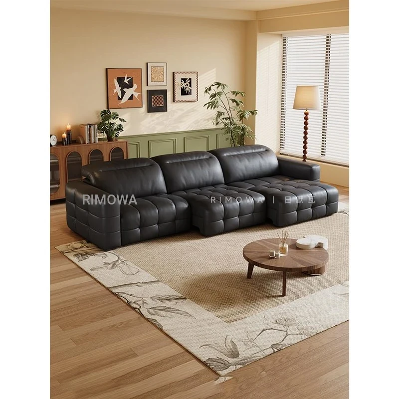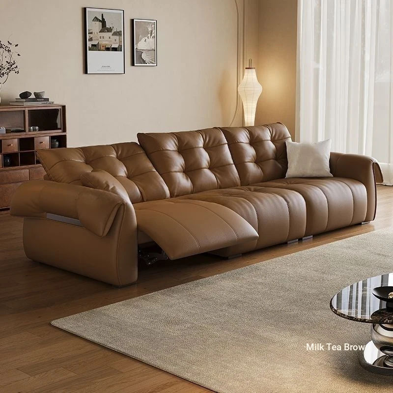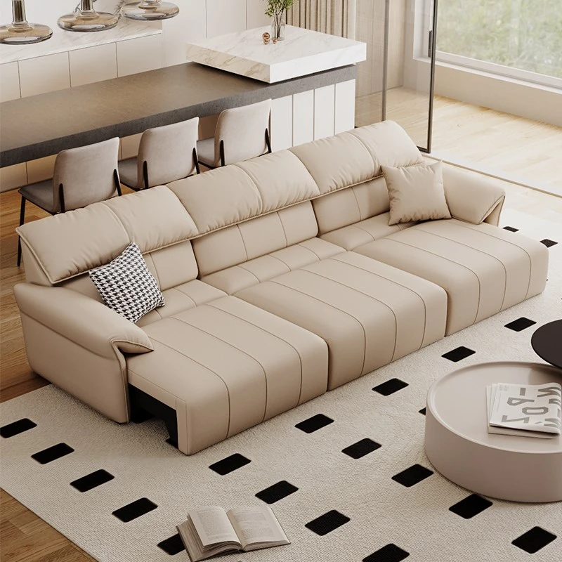 2024 New Italian Elephant Ear Electric Sofa Bed - Multifunctional Leather Sofa with Straight Recline for Your Living Room, Perfect for Comfort and Style!