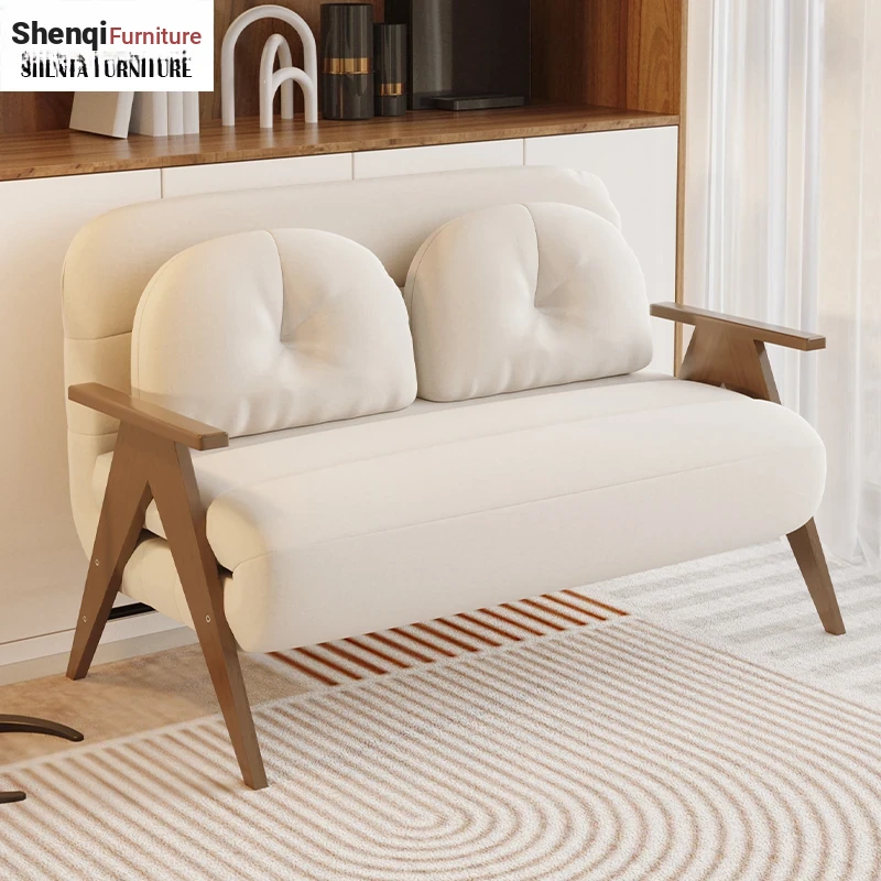 Multifunctional Solid Wood Sofa Bed - Space-Saving, Foldable Design for Small Apartments, Suitable for Singles and Couples, Economical Pull-Out Sit & Sleep Solution, Perfect for Versatile Living Spaces