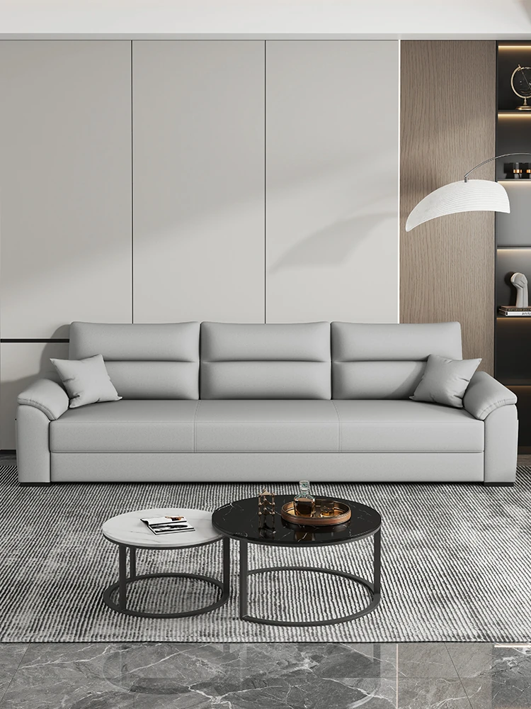 Modern Minimalist Genuine Leather Electric Sofa Bed - Italian Style Adjustable Folding Sofa with Top Layer Cowhide for Home Use