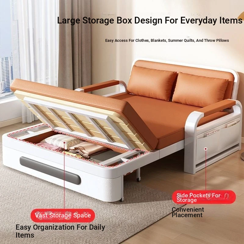 Multifunctional Foldable Sofa Bed for Small Apartments - 1.2m Double and 1.5m Single Options with Storage, Washable Design, Perfect for Living Rooms!