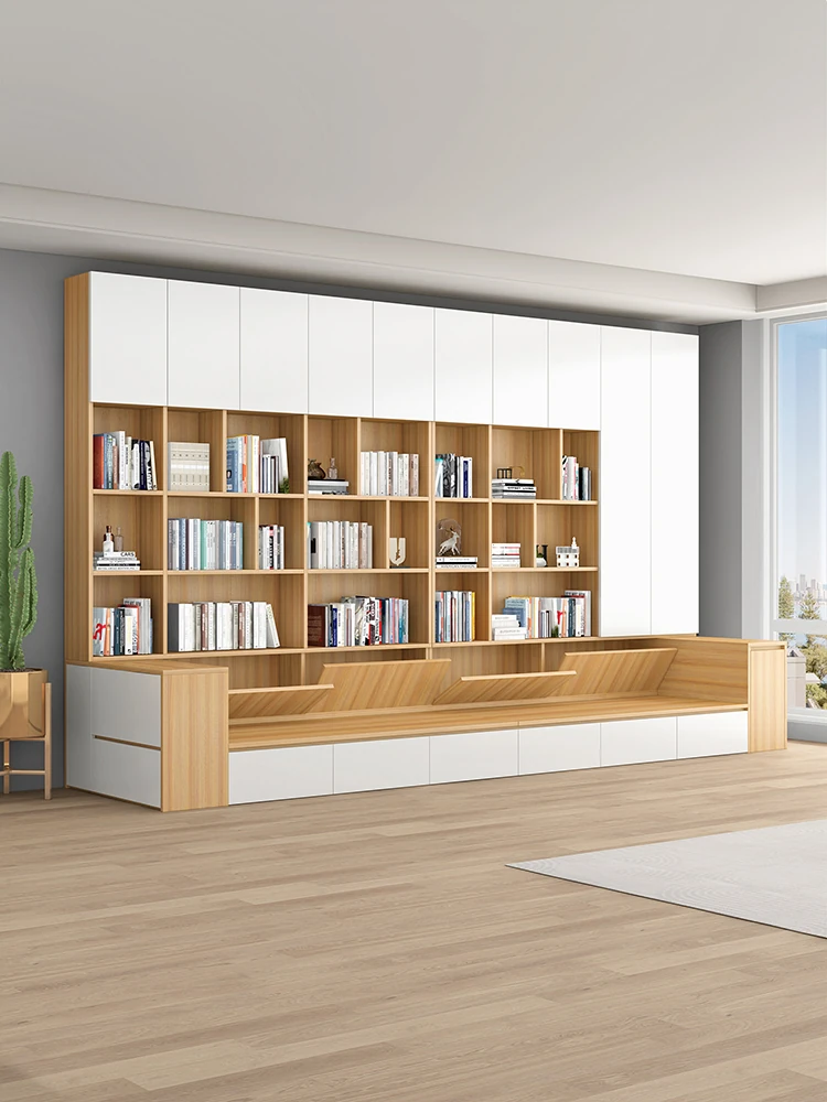 Stylish Full-Wall Bookshelf with Sofa Combination – Multi-Functional Home Storage Unit with Cozy Nook for Living Room