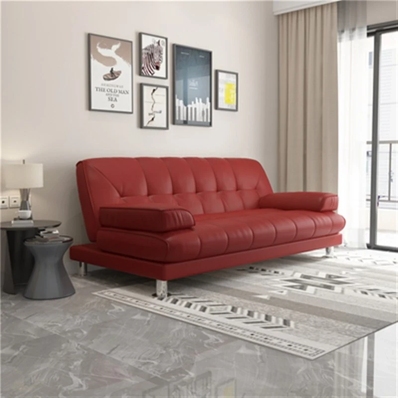 Modern Multifunctional PU Leather Sofa Bed for Small Spaces - Foldable and Removable Cover, Perfect for Living Room and Office Use, High Elasticity, Three-Seater Design
