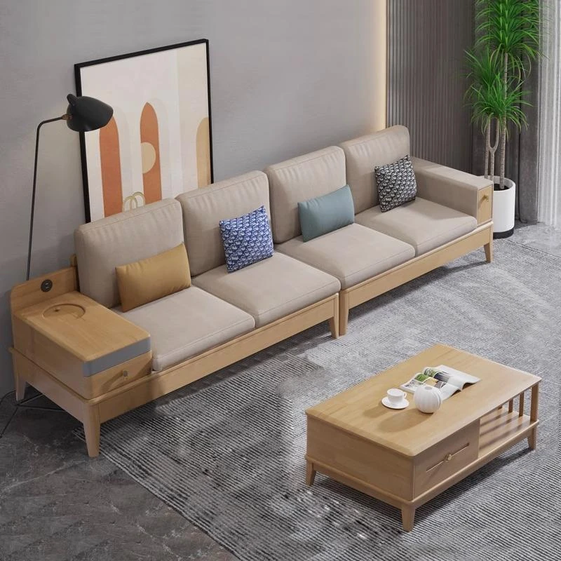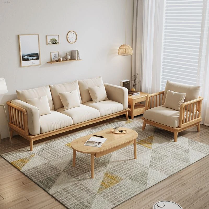Scandinavian Solid Wood Sofa Set - Stylish Minimalist Fabric Sofa for Small Apartments - Affordable Living Room Furniture for Compact Spaces