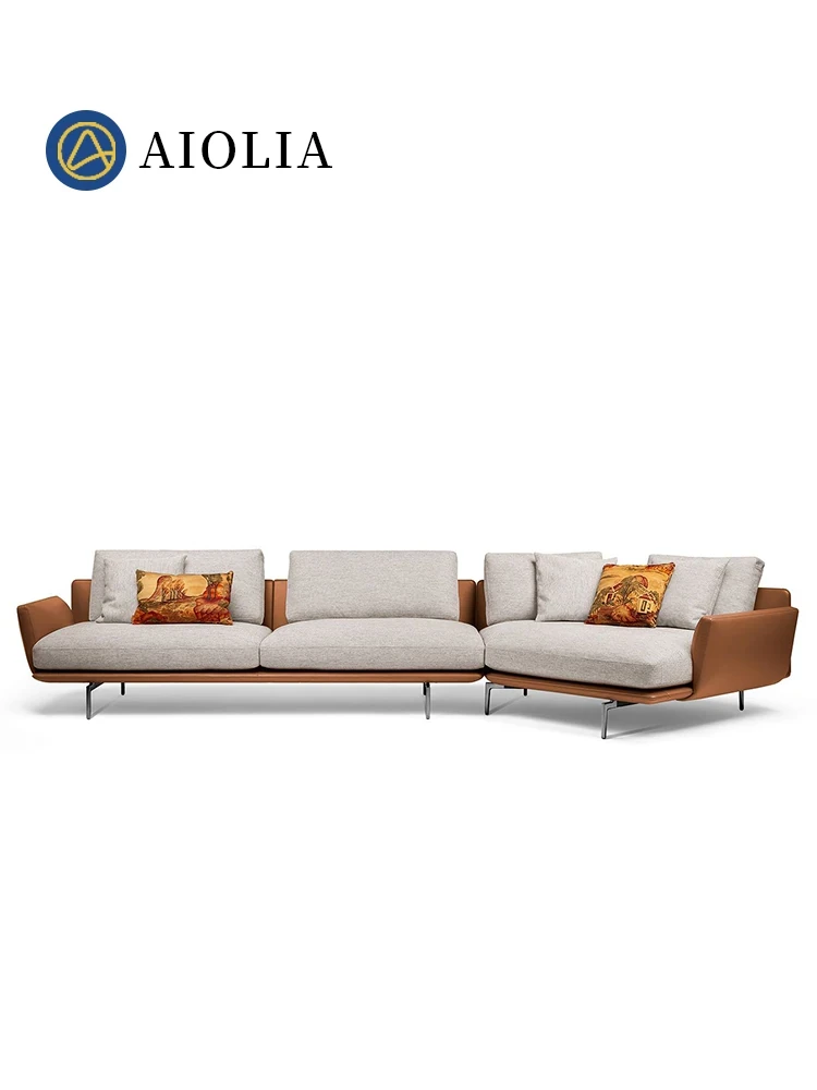 Luxurious Minimalist Asymmetrical Sofa - 4m Designer Leather and Fabric Combination for an Elegant Living Room, Perfect for Modern Spaces.