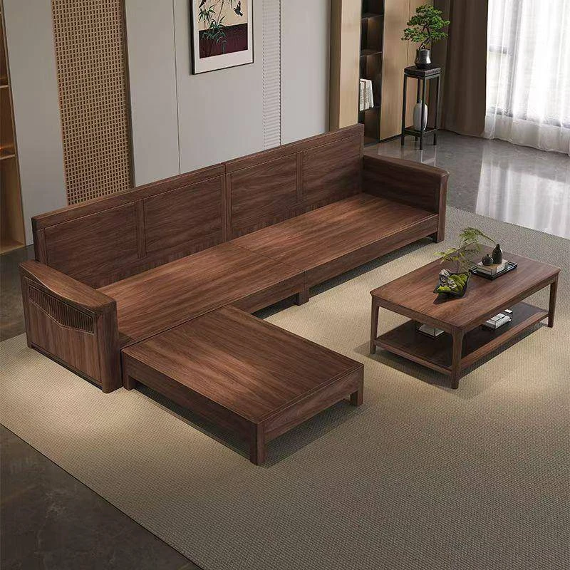 Modern Minimalist Solid Wood Sofa Set in South American Black Walnut for Living Room - Perfect for Small Spaces with Corner Sofa Combination