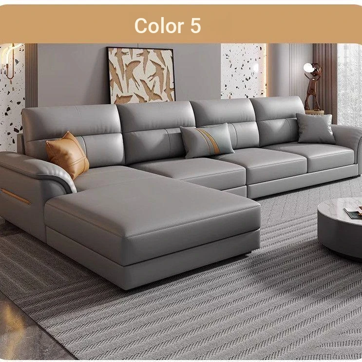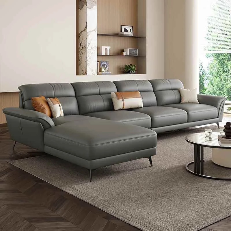 2023 New Arrival: Modern Minimalist Genuine Top Grain Leather L-Shaped Sectional Sofa with Chaise for Spacious Living Rooms