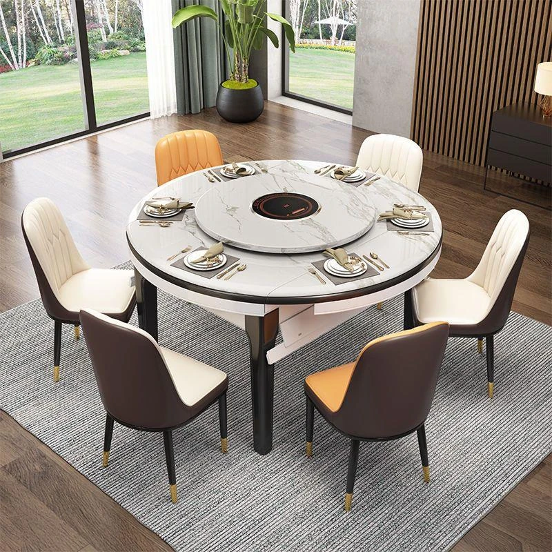 Elegant Minimalist Marble Expandable Solid Wood Dining Table Set with Induction Cooker and Hot Pot – Perfect for Home Dining and Entertaining!