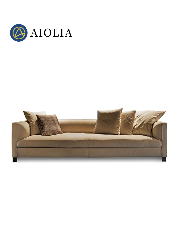 Italian Minimalist Four-Seat Sofa for Small Spaces - Loft Style Apartment, Wabi-Sabi Aesthetic with Soft Velvet Fabric, Perfect for Cozy Living Rooms