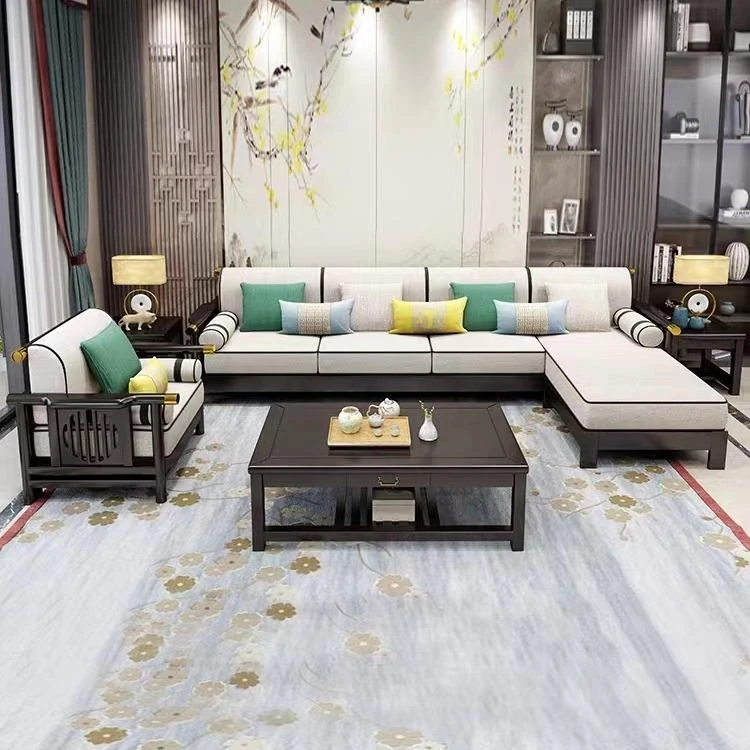 Modern Chinese Style H1F2X Rosewood Solid Wood Sofa Set - Elegant Antique Carved Corner Sofa for All Seasons, Combining Simplicity and Sophistication
