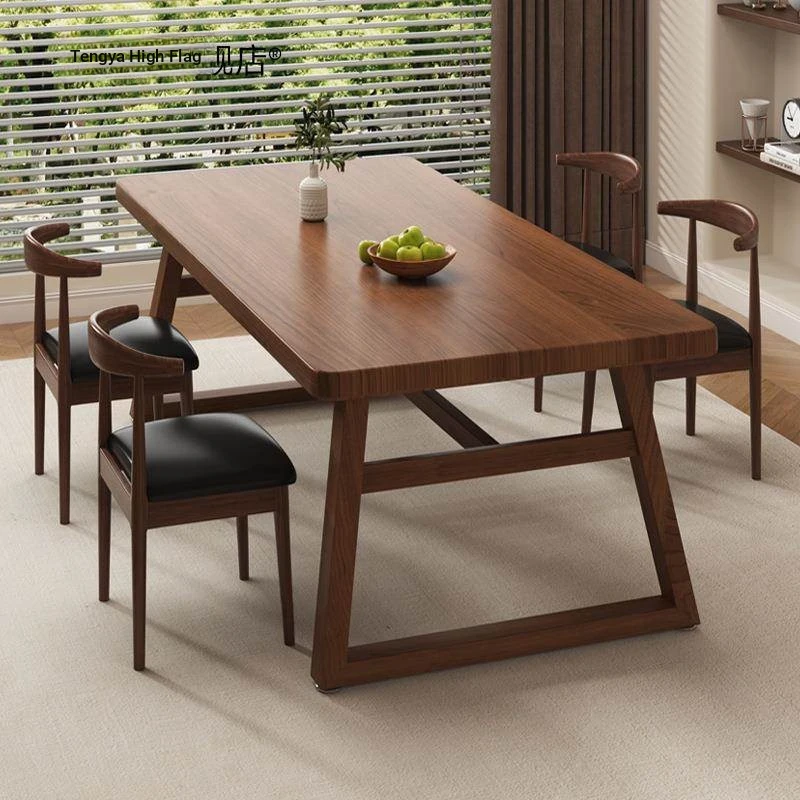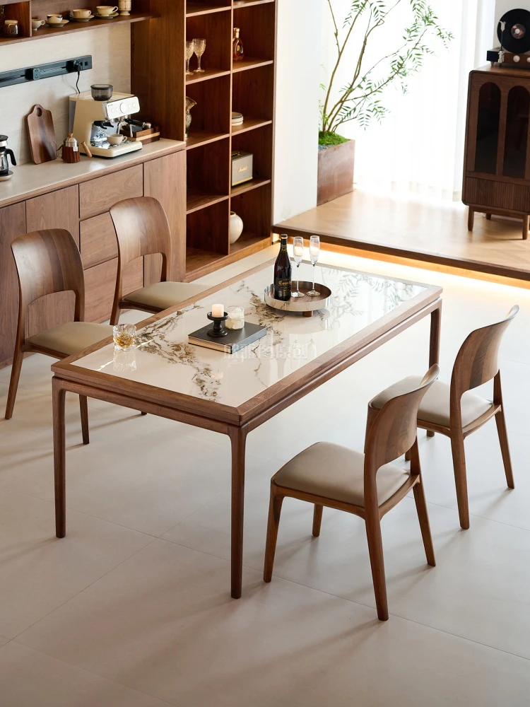 2025 New High-End Solid Walnut Dining Table Set - Stylish Home Dining Table with Rock Slab Top and Chairs for Premium Dining Experience in North America
