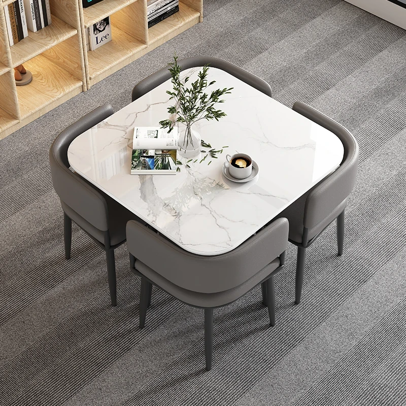Modern Compact Dining Table for Small Spaces - Stylish Square Ceramic Table Set for Home, Cafés, and Office Meetings, Perfect for Casual Dining and Client Discussions