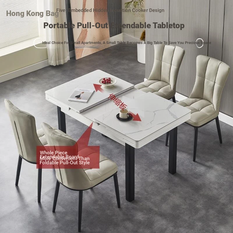 Modern Minimalist Expandable Rock Plate Dining Table Set for Small Spaces - Thickened Rock Plate with Matching Chairs, Perfect for Home Use