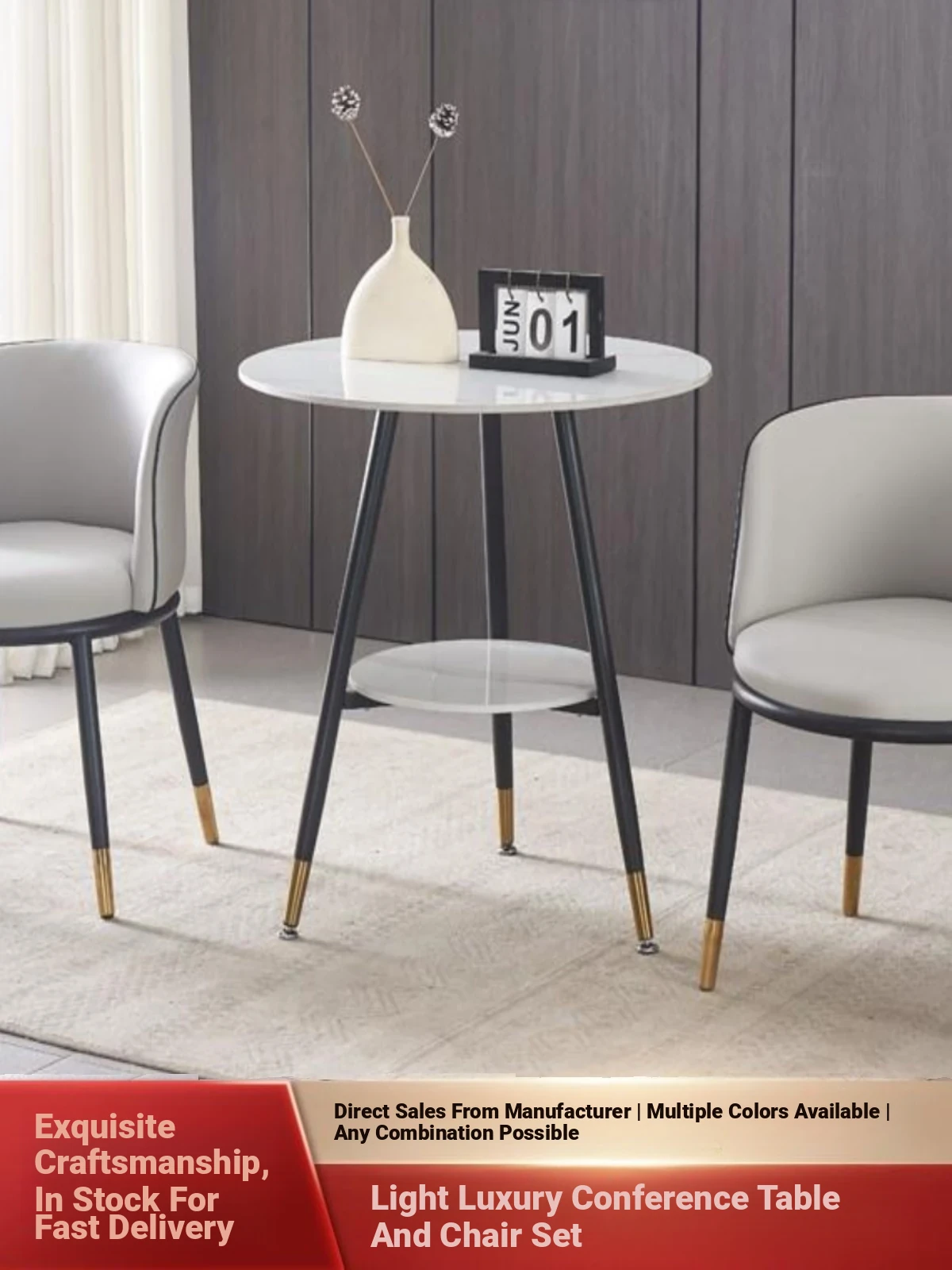 Stylish Small Round Table - Trendy Double-Layer Design for Luxurious Meetings & Home Use, Perfect for Balconies and Commercial Reception Areas