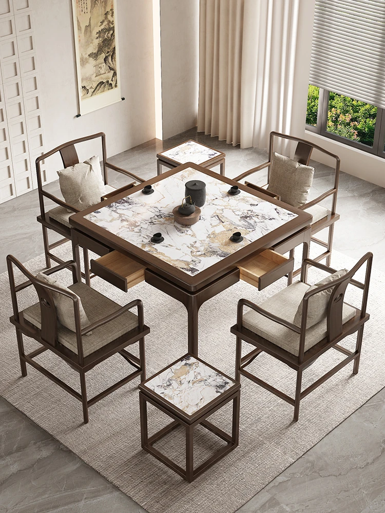 Modern Minimalist Square Dining Table - Solid Wood Game Table for Small Spaces, Luxurious Rock Board Design, New Chinese Style Eight Immortals Table