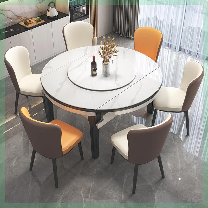 Free Shipping to Xinjiang and Tibet - Modern Minimalist Luxury Folding Expandable Round Dining Table and Chair Set for Home Use