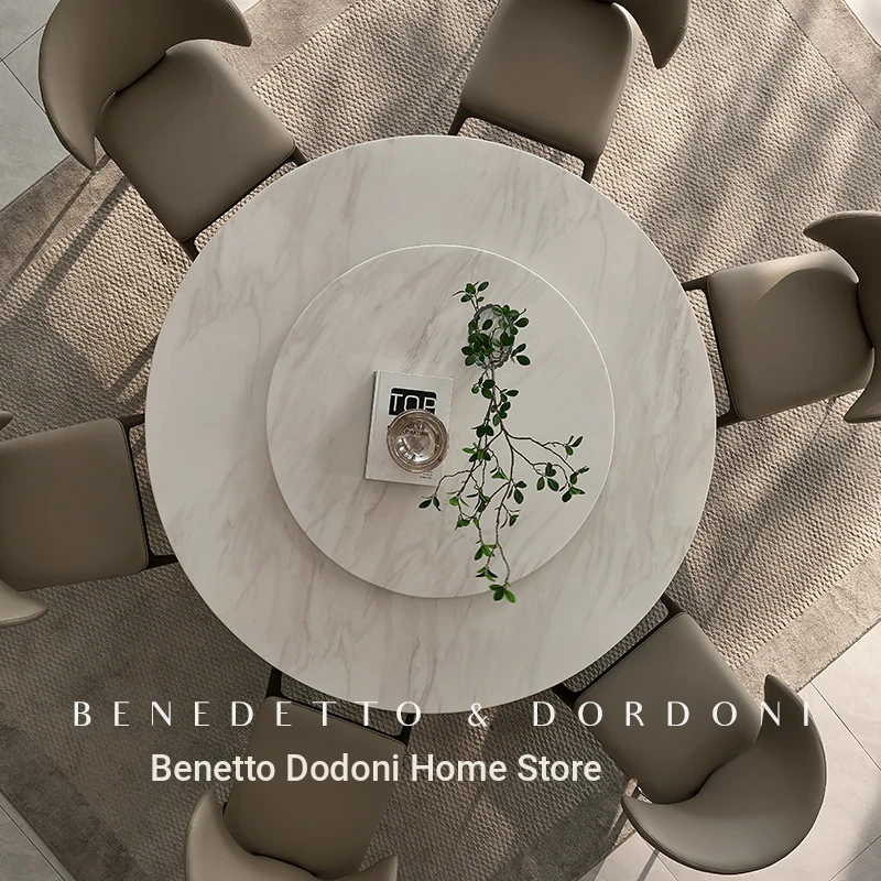 Modern Minimalist Round Marble Dining Table with Lazy Susan - Elegant Luxury Dining Set for Spacious Homes
