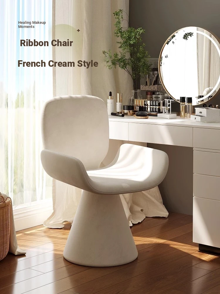 Elegant Makeup Stool for Women - Creamy Aesthetic Vanity Chair with Backrest, Perfect for Bedrooms and Nail Art, Rotatable Design for Ultimate Comfort