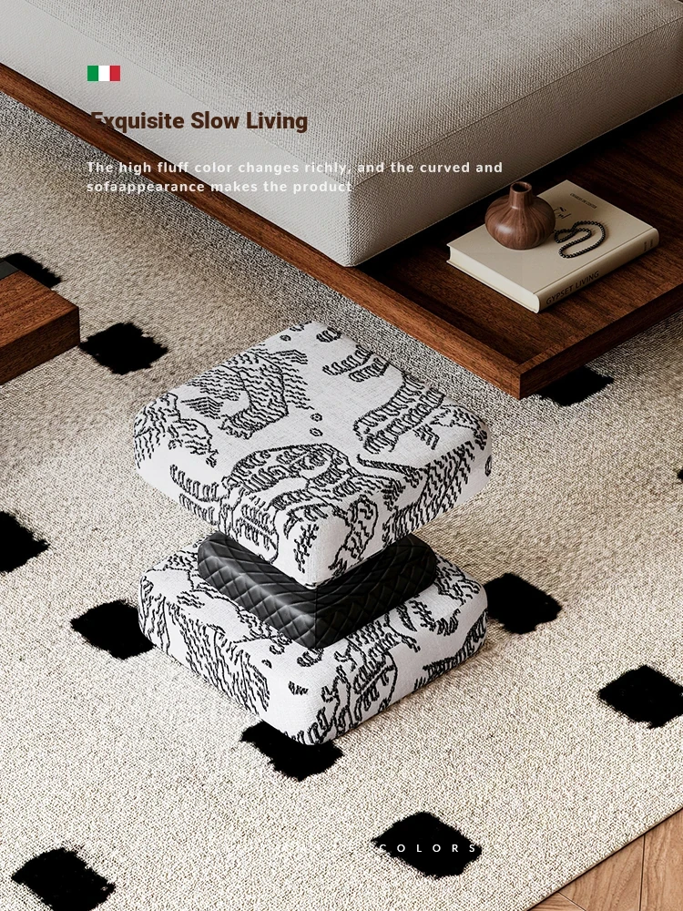 Modern Minimalist Small Home Velvet Stool - Unique Solid Wood Dressing Square Stool for Hotels, Cafes, and Entryway Shoe Changing Seat