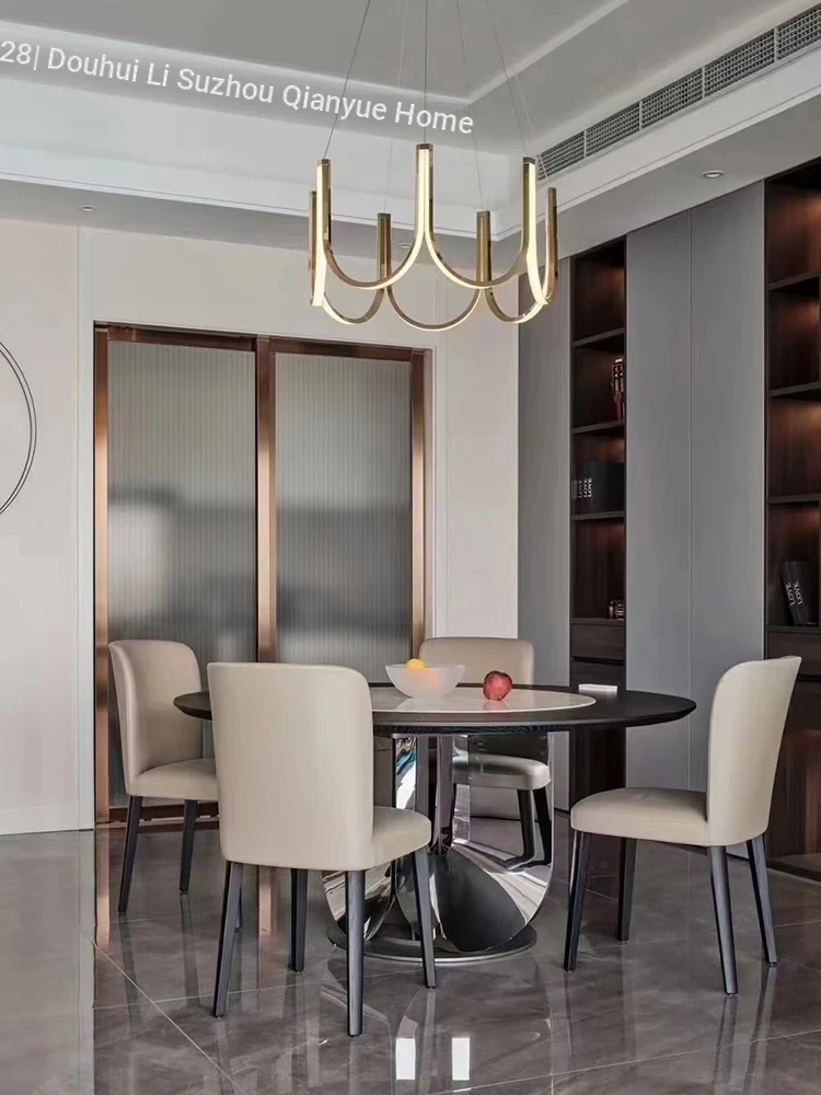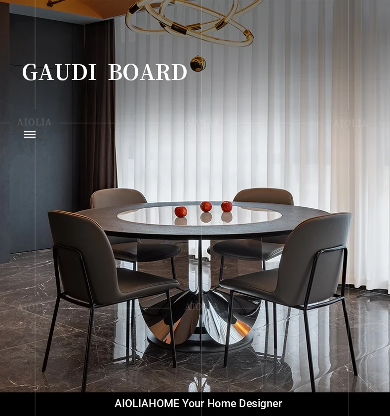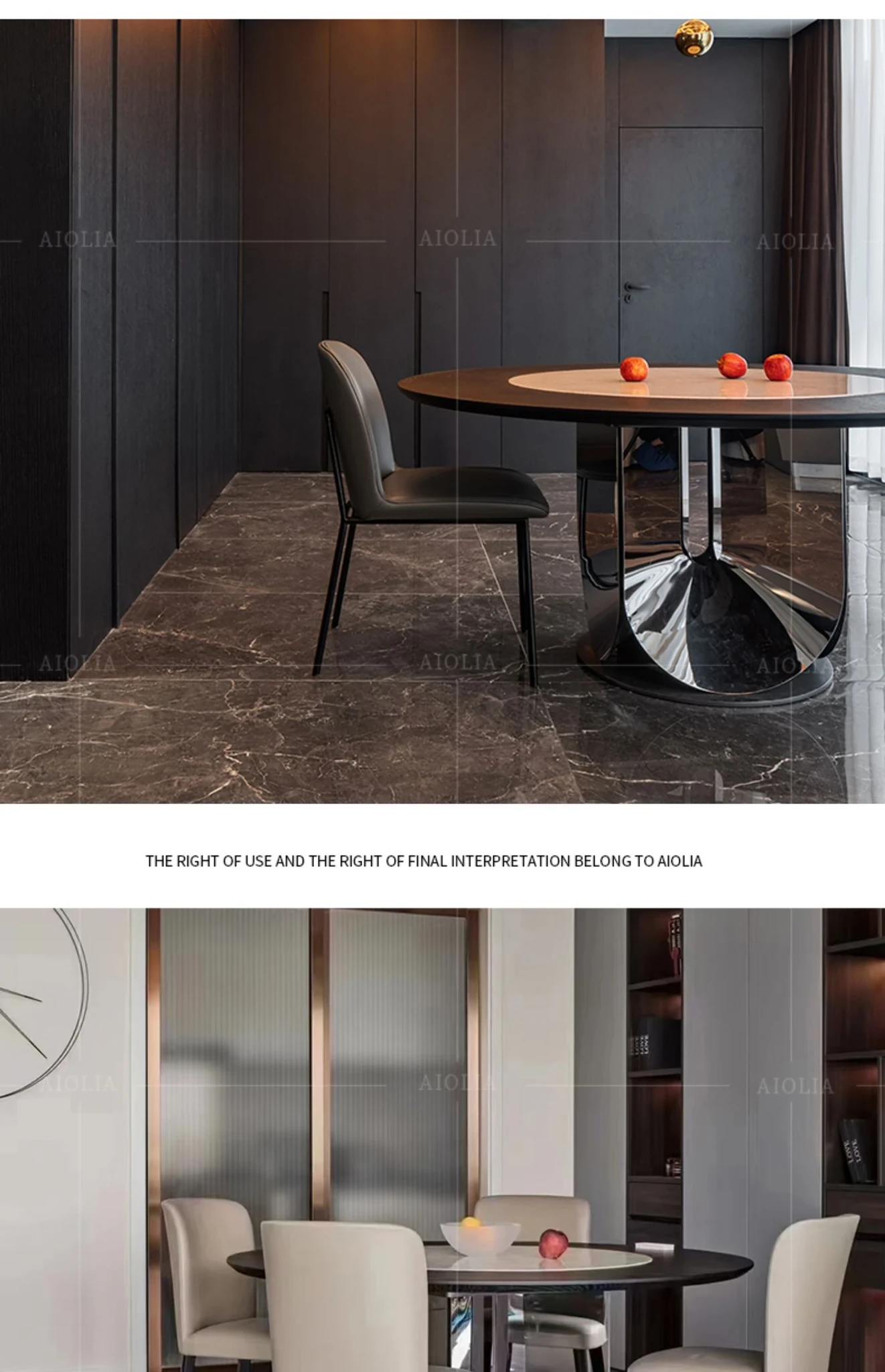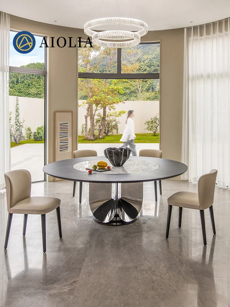 2025 New Luxury Round Dining Table with Modern Minimalist Design - Elegant Black Stone Rotating Small Plate for a Touch of Sophistication