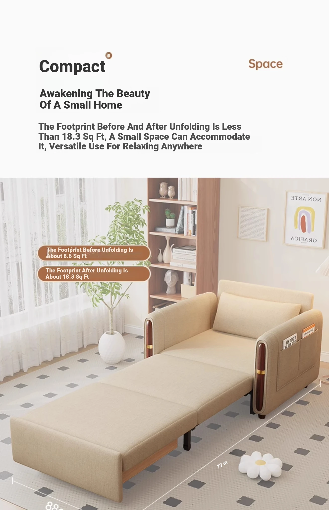 2025 New Multifunctional One-Person Folding Sofa Bed - 2-in-1 Expandable Design for Small Spaces, Perfect for Your Living Room!
