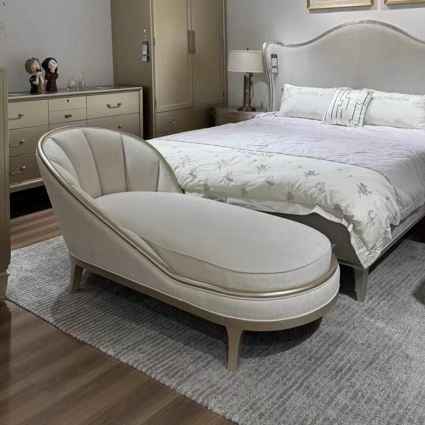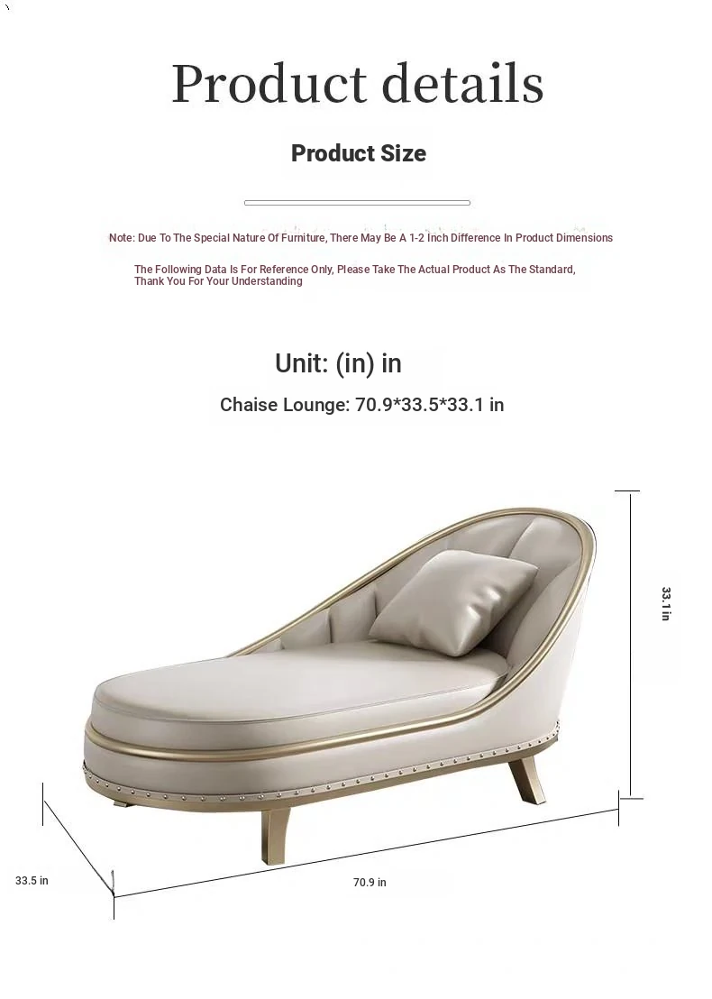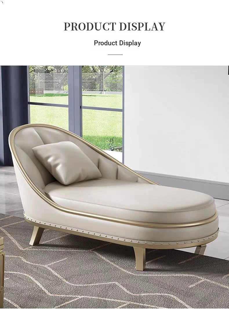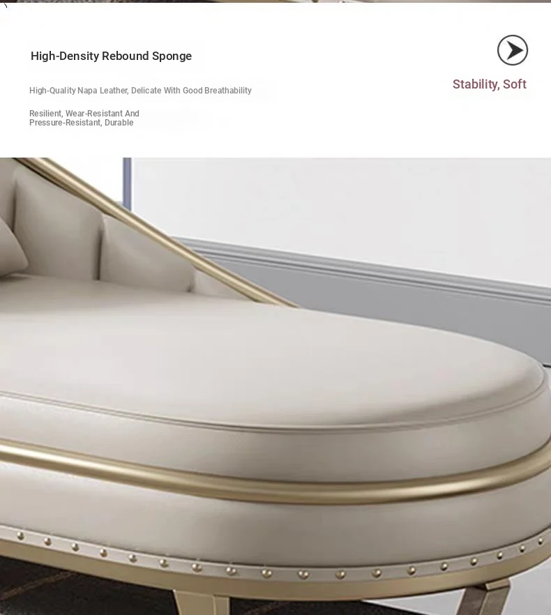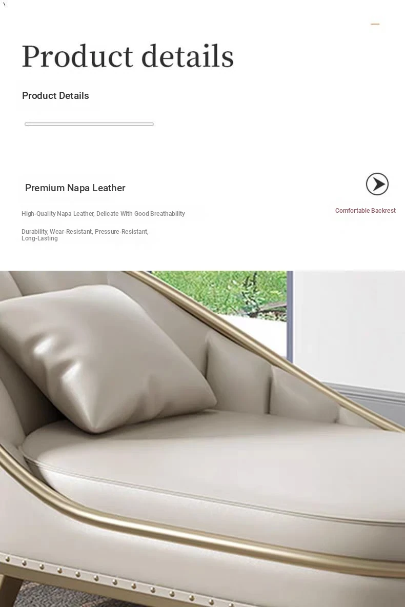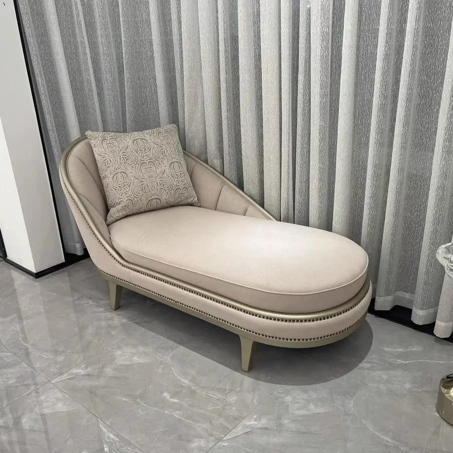 American Style Solid Wood Chaise Lounge - Elegant European Genuine Leather Single Sofa for Bedroom and Living Room, Perfect for Small Spaces