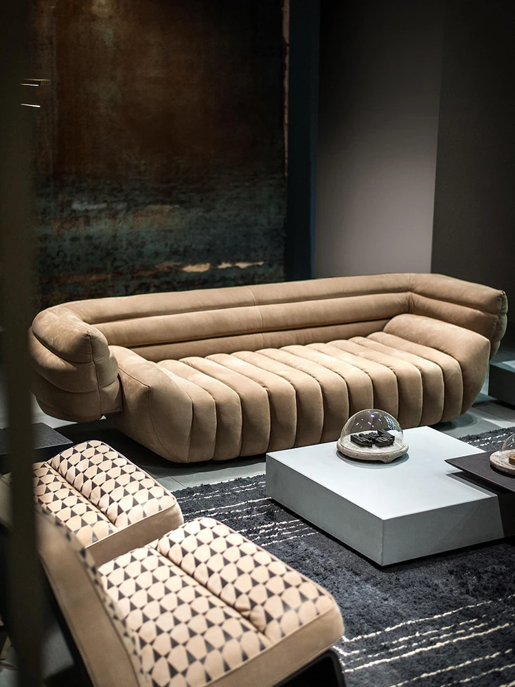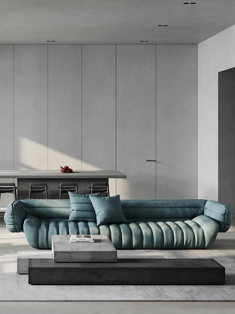 Baxter Banana-Shaped Sofa: Luxurious Minimalist Design in High-Tech Fabric for 4 People - Perfect for Upscale Villas with Wabi-Sabi Aesthetic