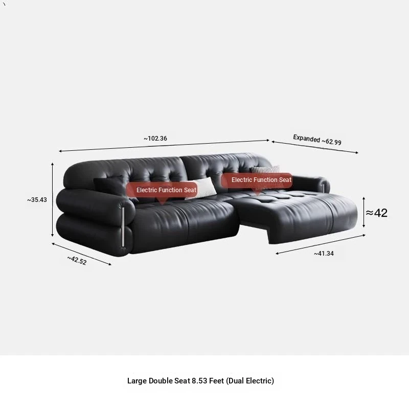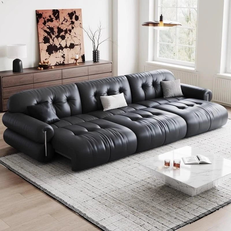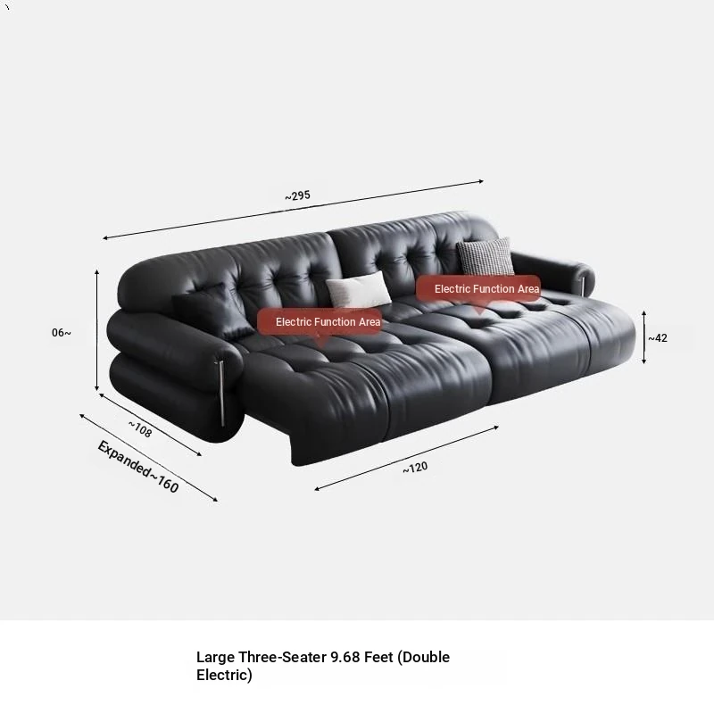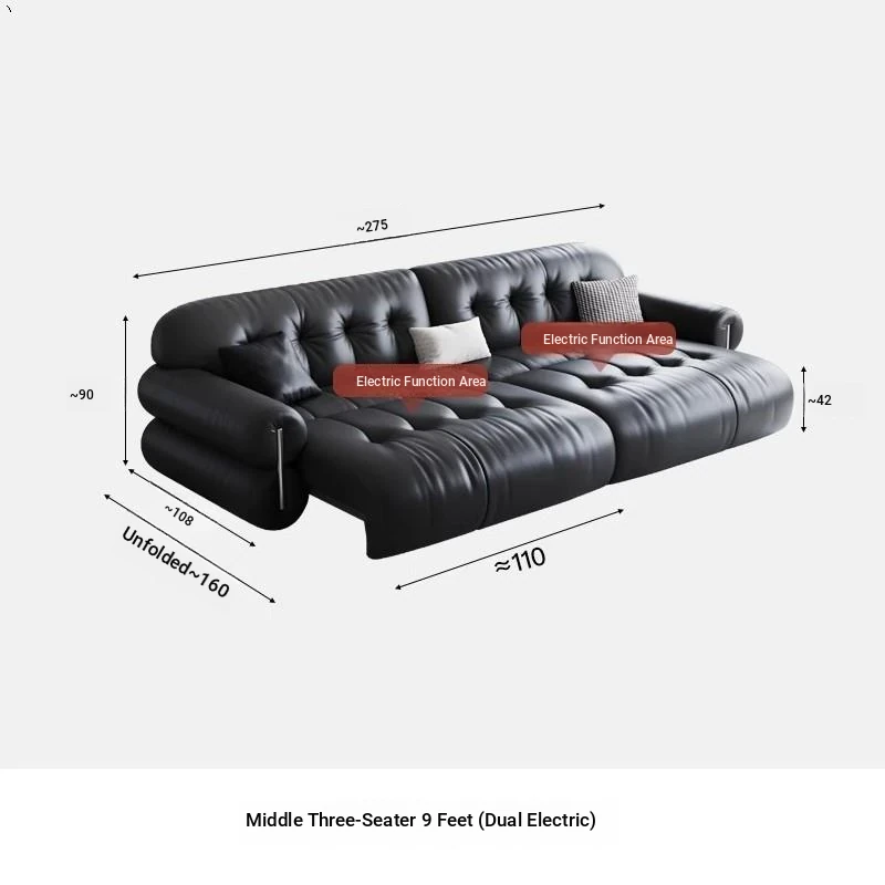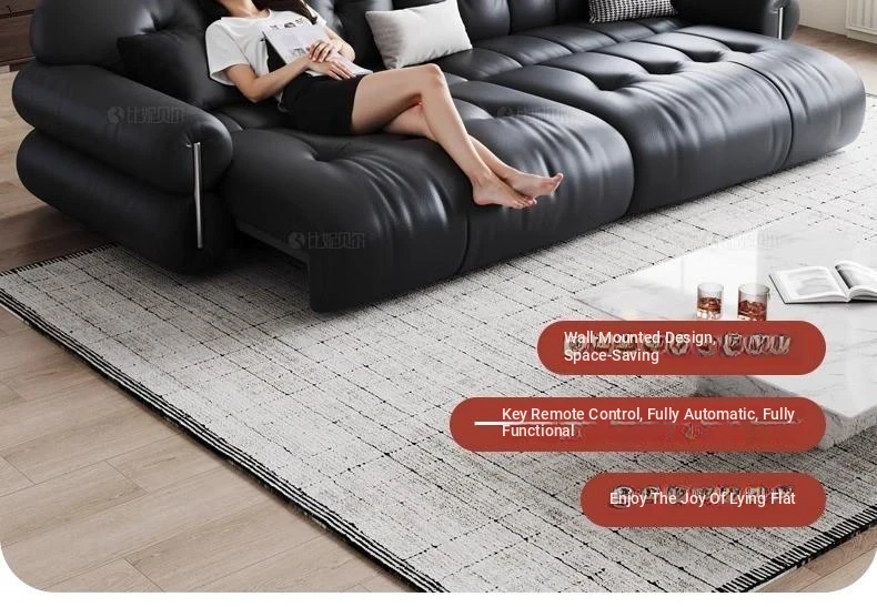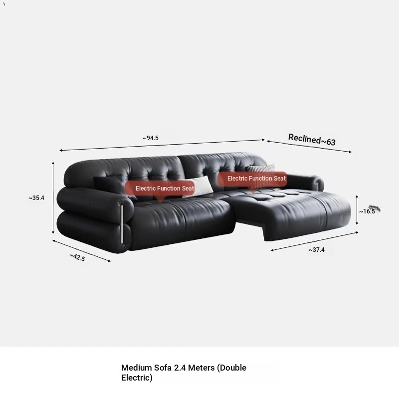 Black Sugar Cloud Electric Reclining Sofa Bed - Stylish Black Leather Three-Seater with Wall Hugger Design and Adjustable Features for Ultimate Comfort