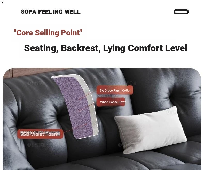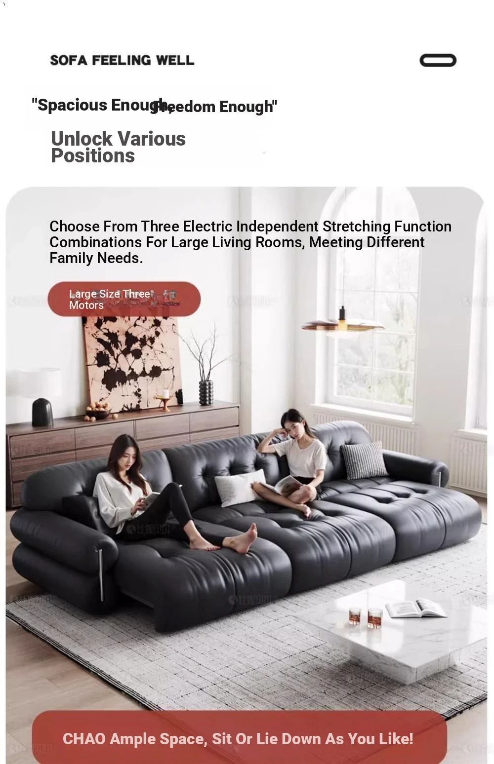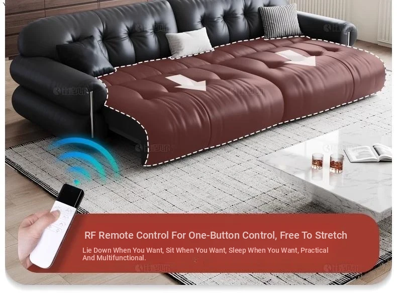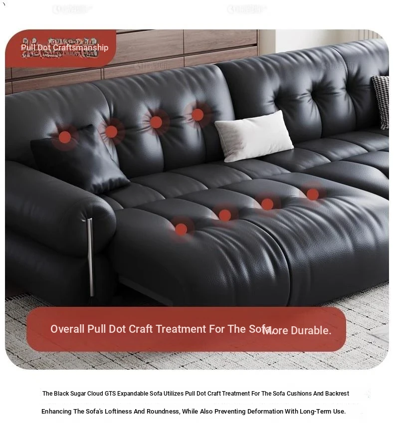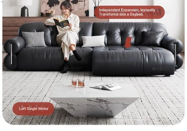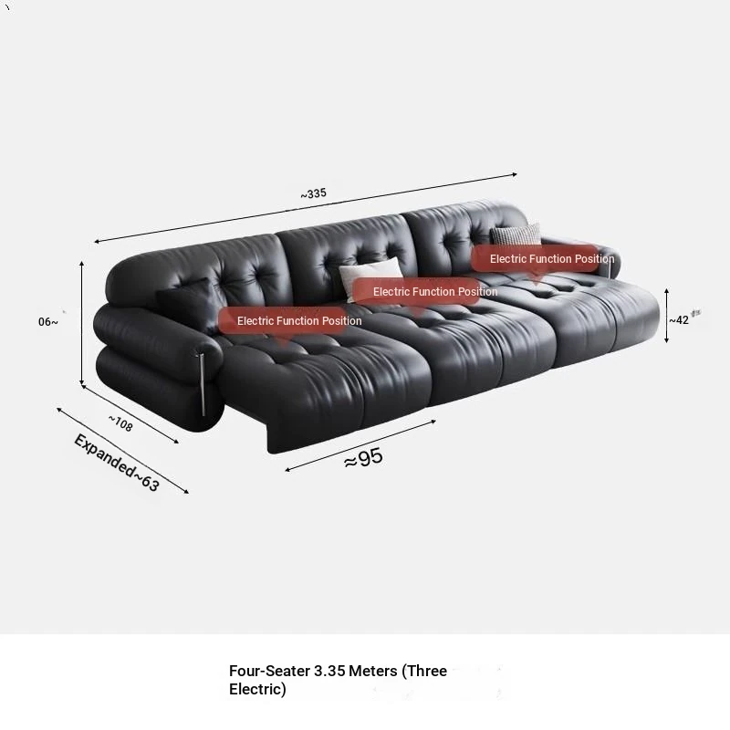 Black Sugar Cloud Electric Reclining Sofa Bed - Stylish Black Leather Three-Seater with Wall Hugger Design and Adjustable Features for Ultimate Comfort