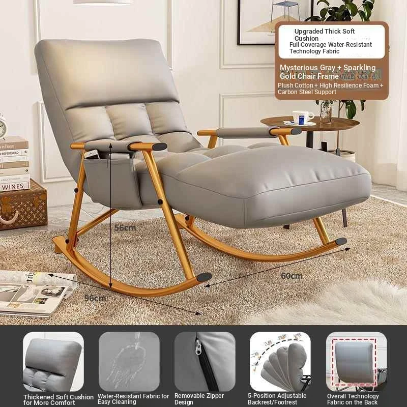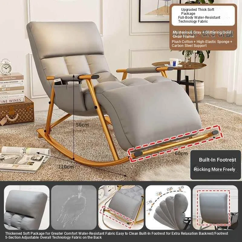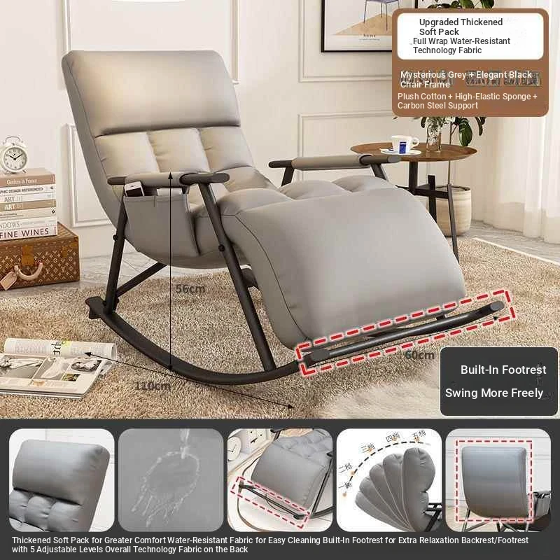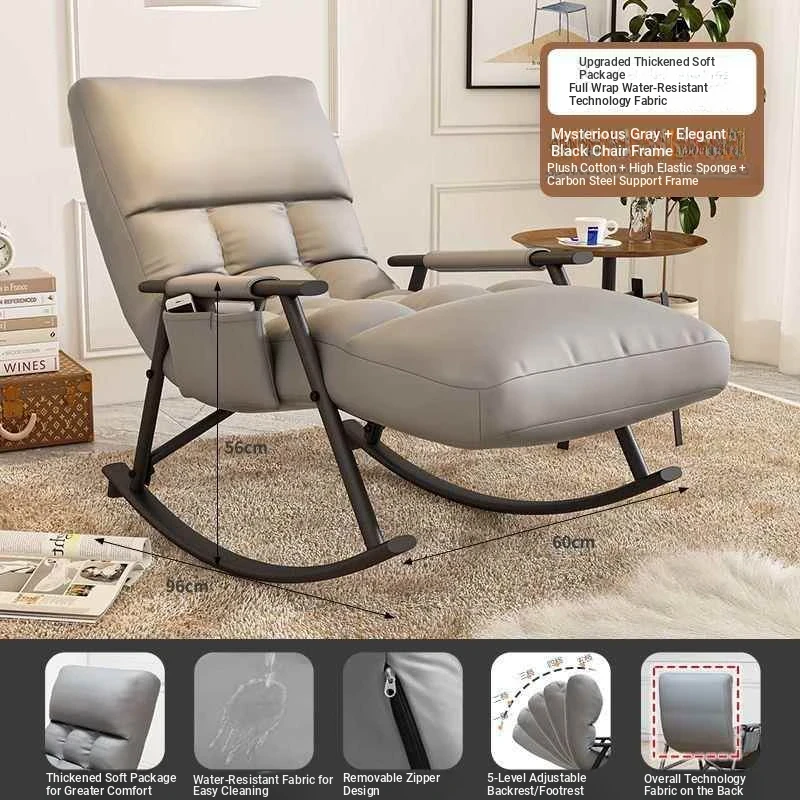 Minimalist Mysterious Grey Technology Cloth-Black Leg Rocking Chair with Ten-gear Adjustment