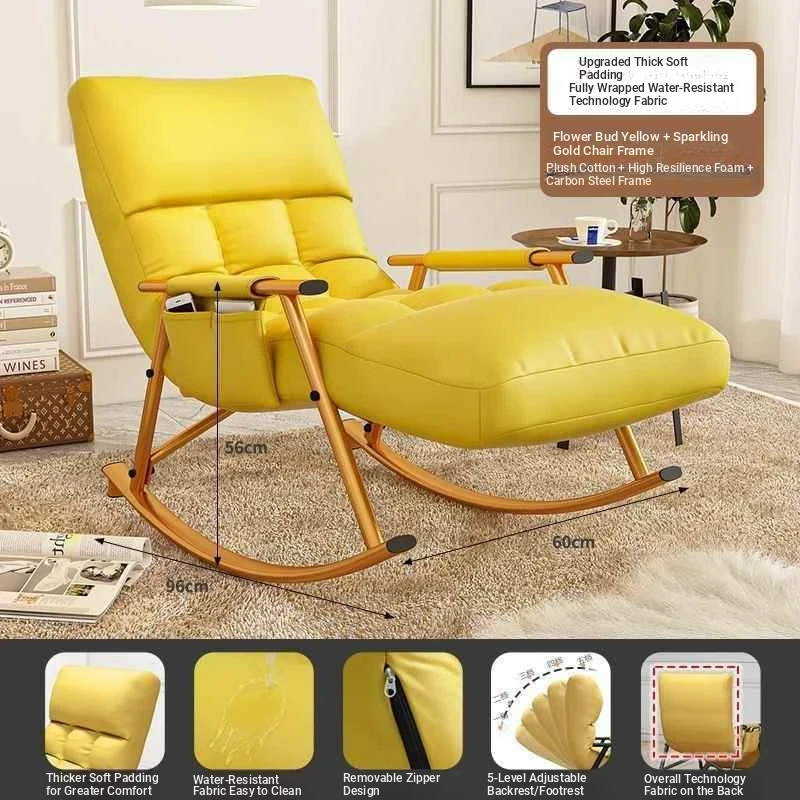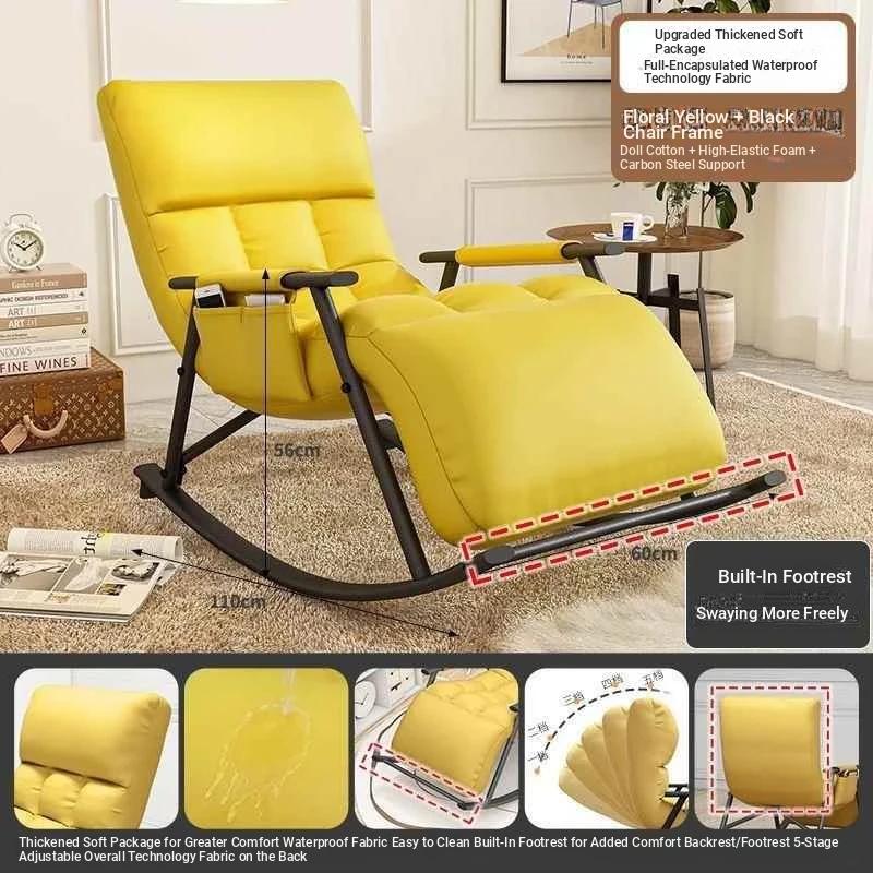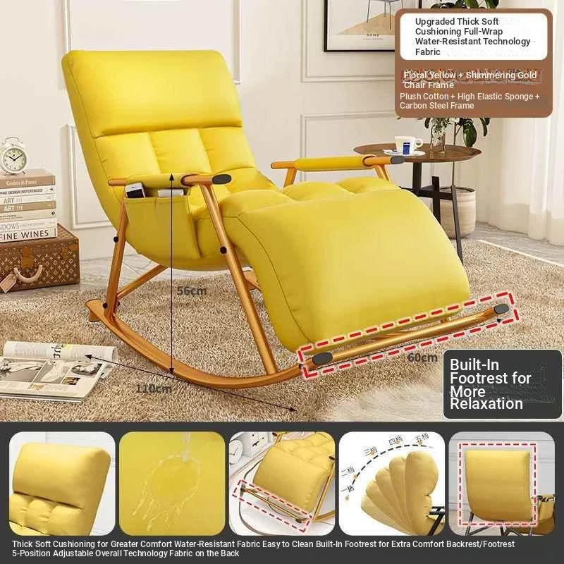 Luxury yellow technology cloth, pedal style-rocking chair with black leg and ten-gear adjustment