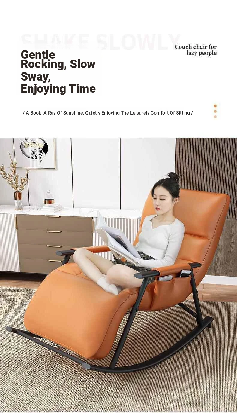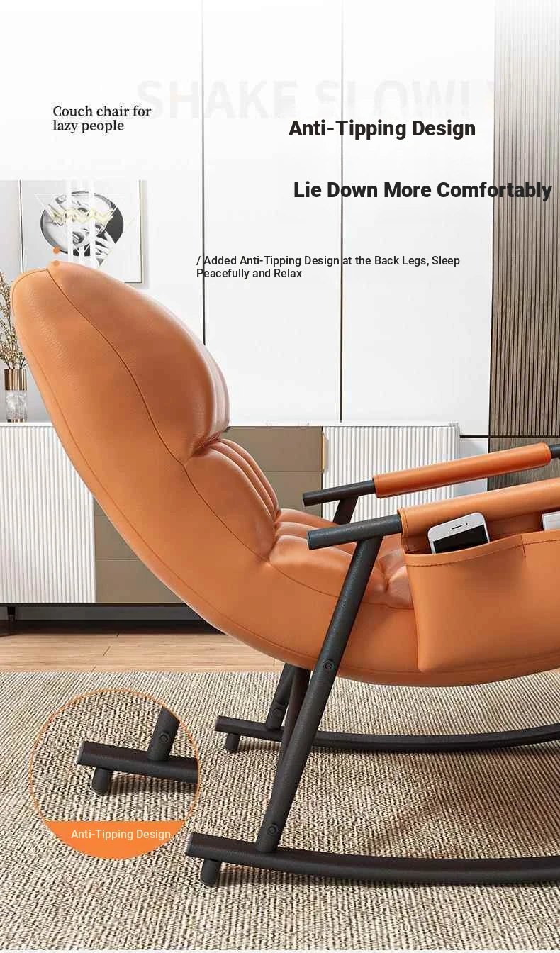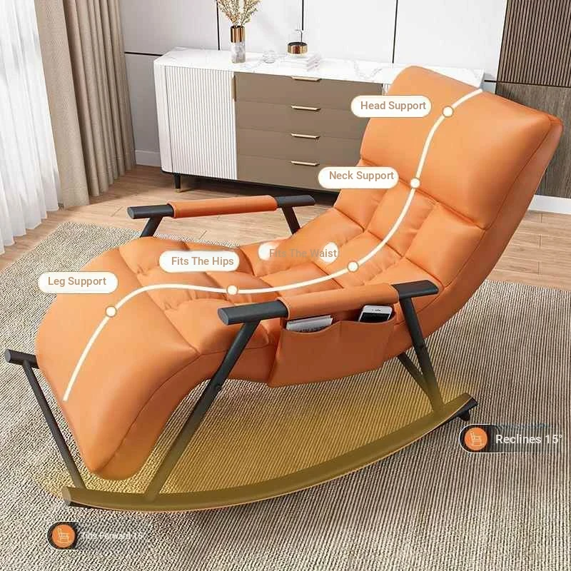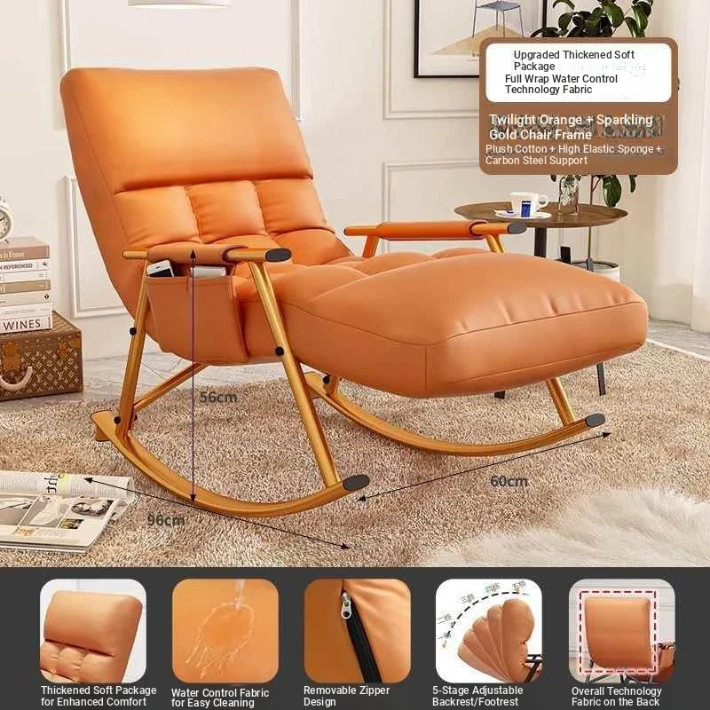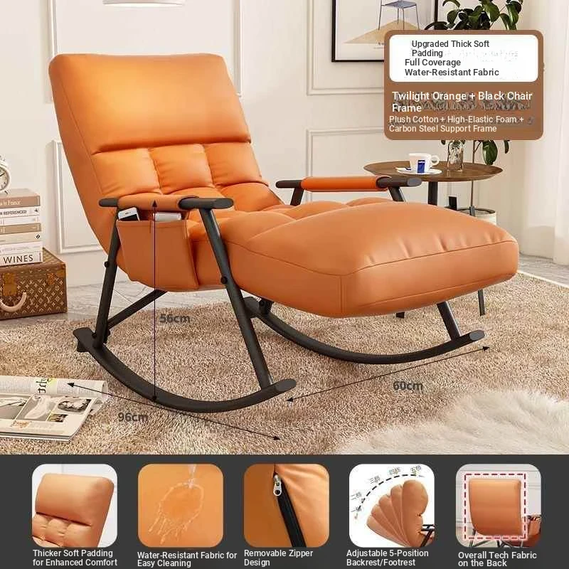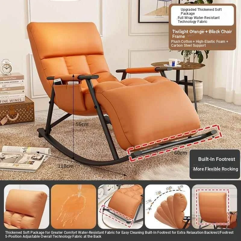 Minimalist Twilight Orange Technology Cloth-Black Leg Rocking Chair with 10th Gear Adjustment