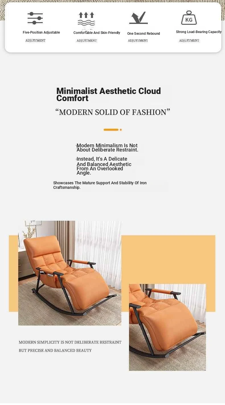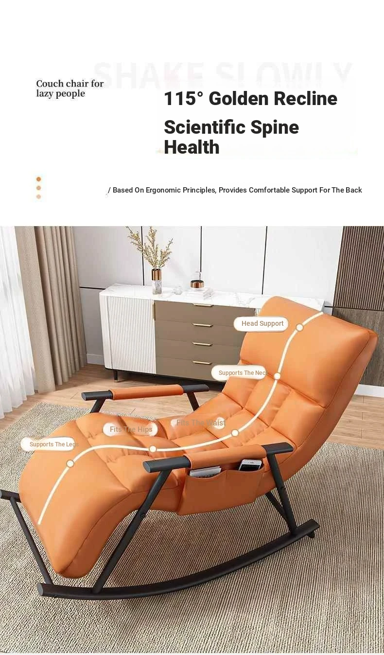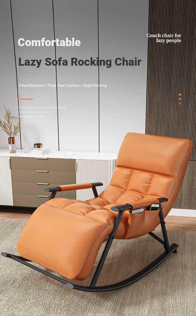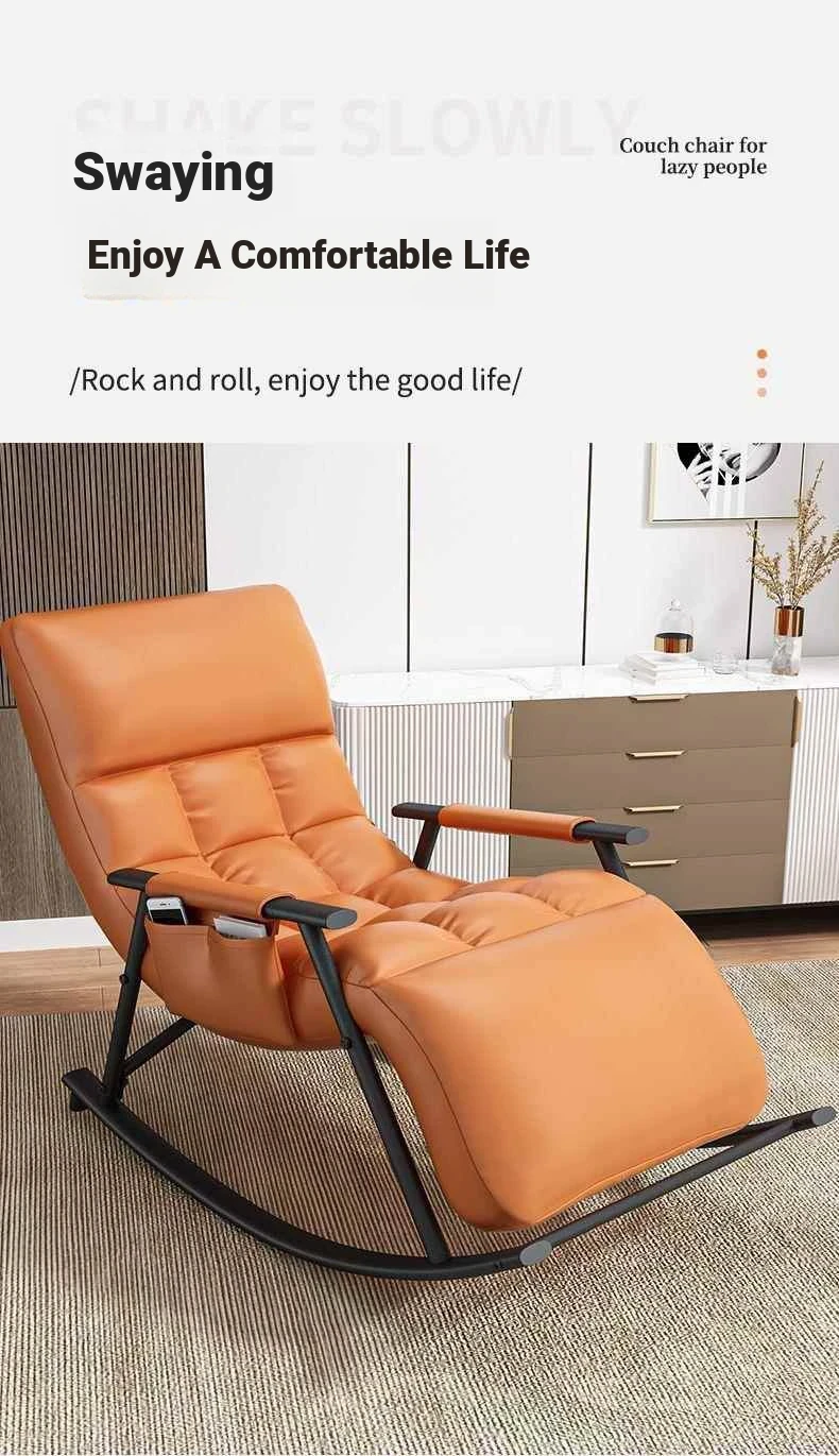 Minimalist Twilight Orange Technology Cloth-Black Leg Rocking Chair with 10th Gear Adjustment