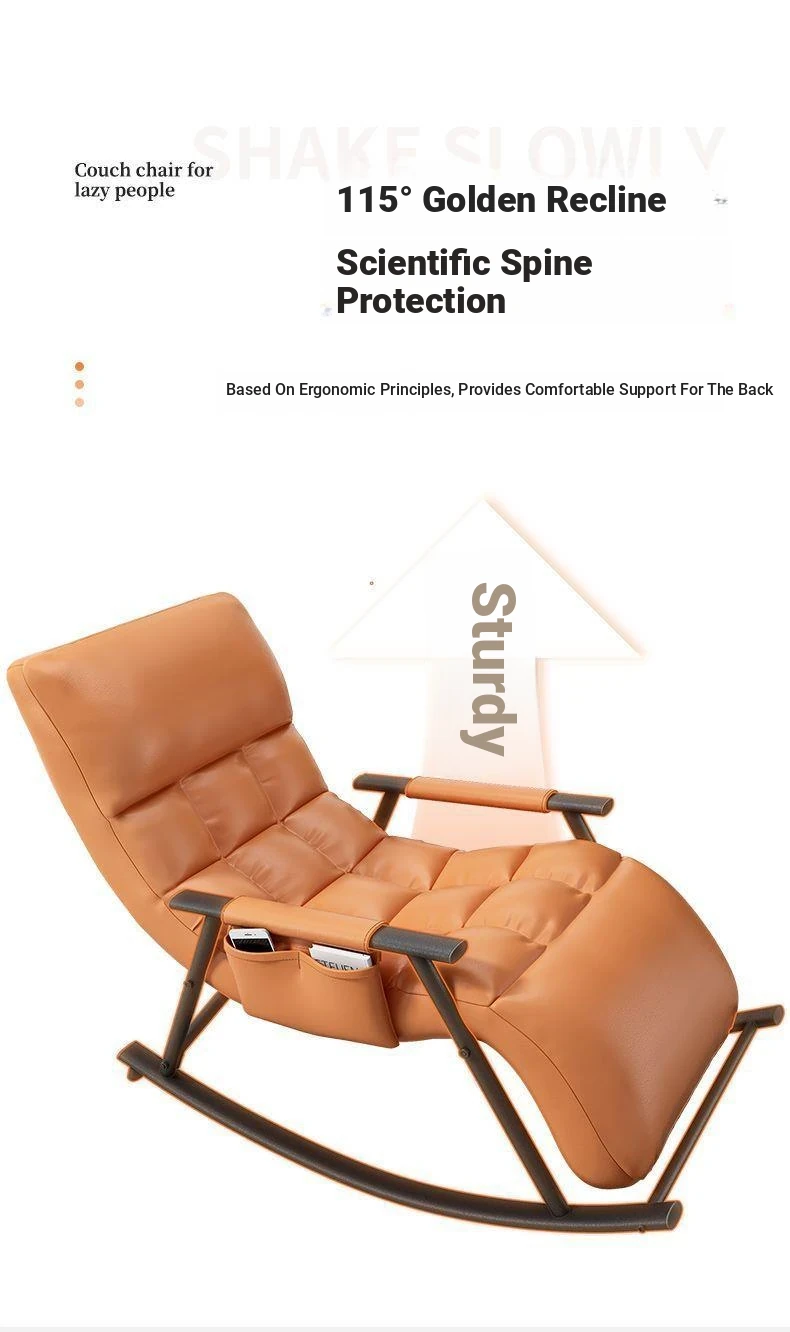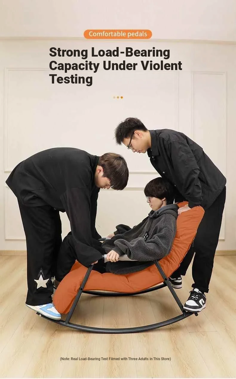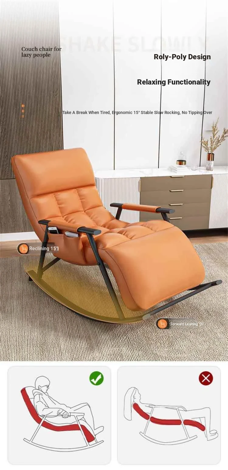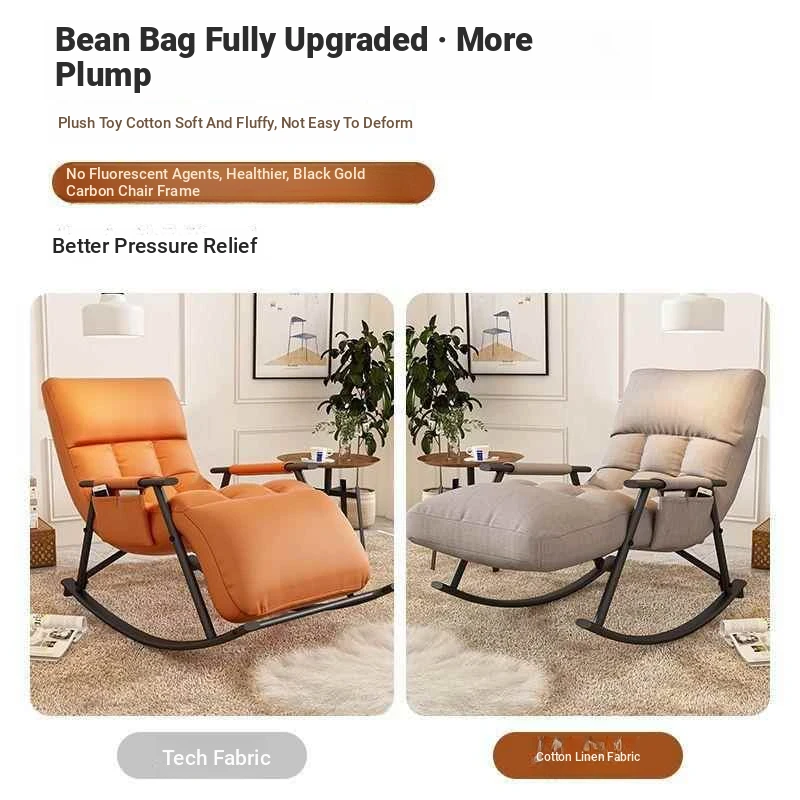 Minimalist Twilight Orange Technology Cloth-Black Leg Rocking Chair with 10th Gear Adjustment
