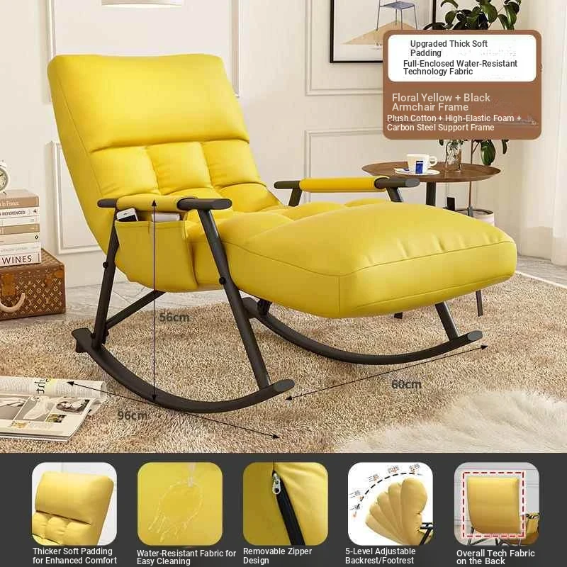 Minimalist flower yellow technology cloth-black leg ten-gear adjustable rocking chair