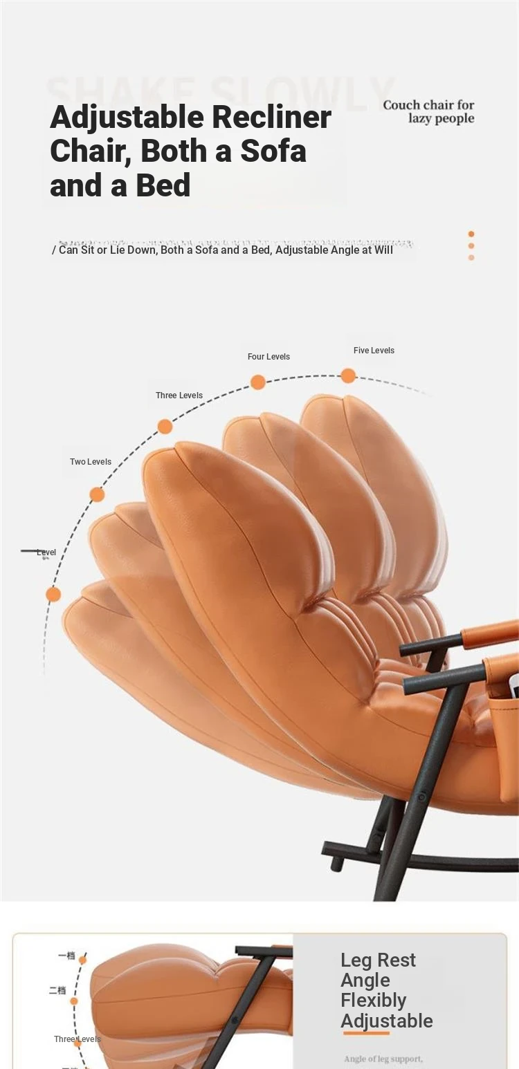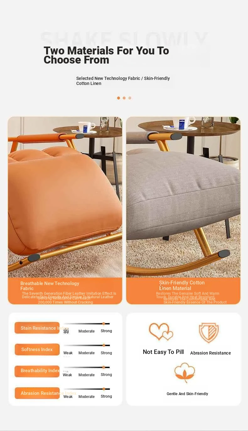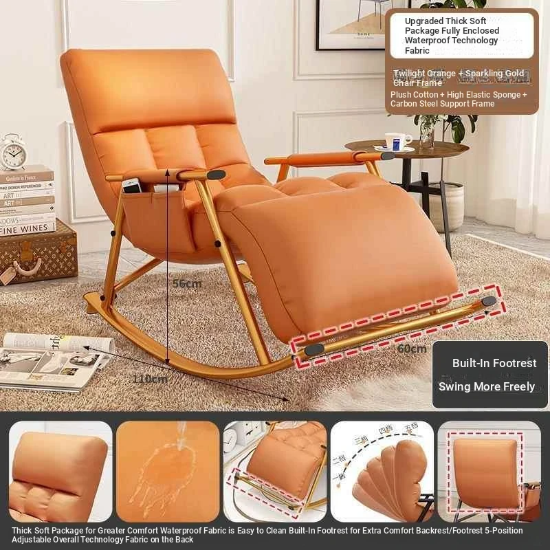 Luxury Twilight Orange Technology Cloth, Pedal-Black Leg Rocking Chair with 10-gear Adjustment