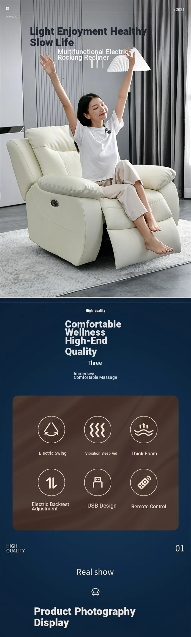Comfortable Single Recliner Chair - Lazy Space Capsule Automatic Rocking Chair for Adults, Perfect for Relaxing and Napping at Home, Functional Sofa Rocking Chair