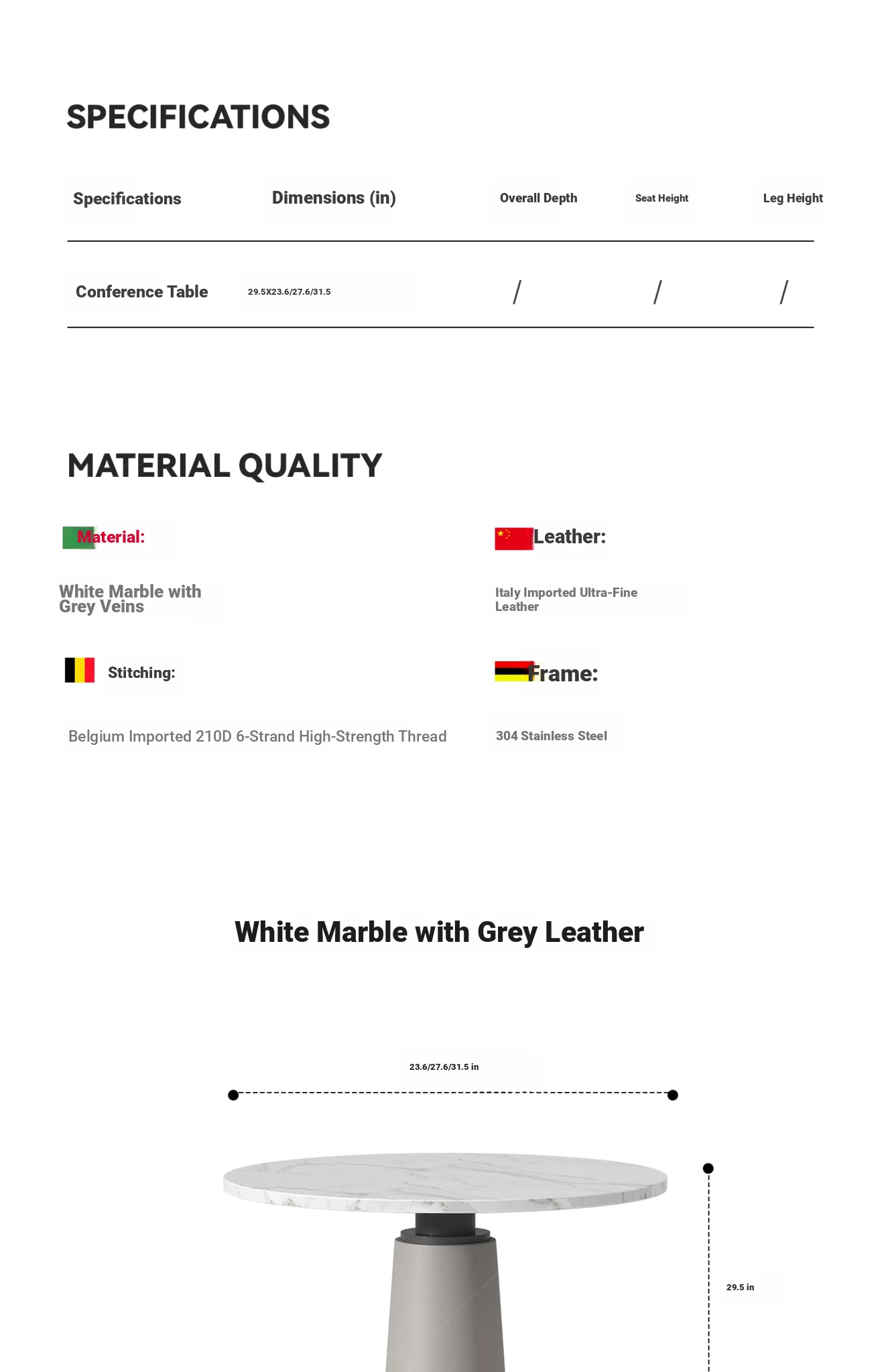 Medium white marble + gray leather