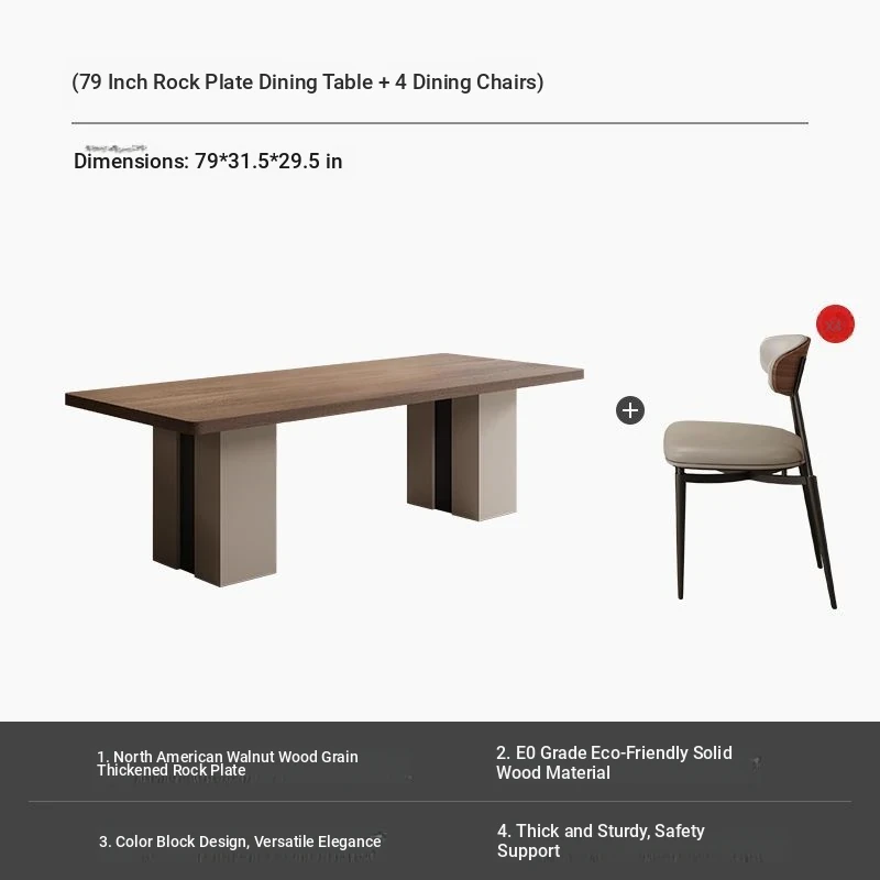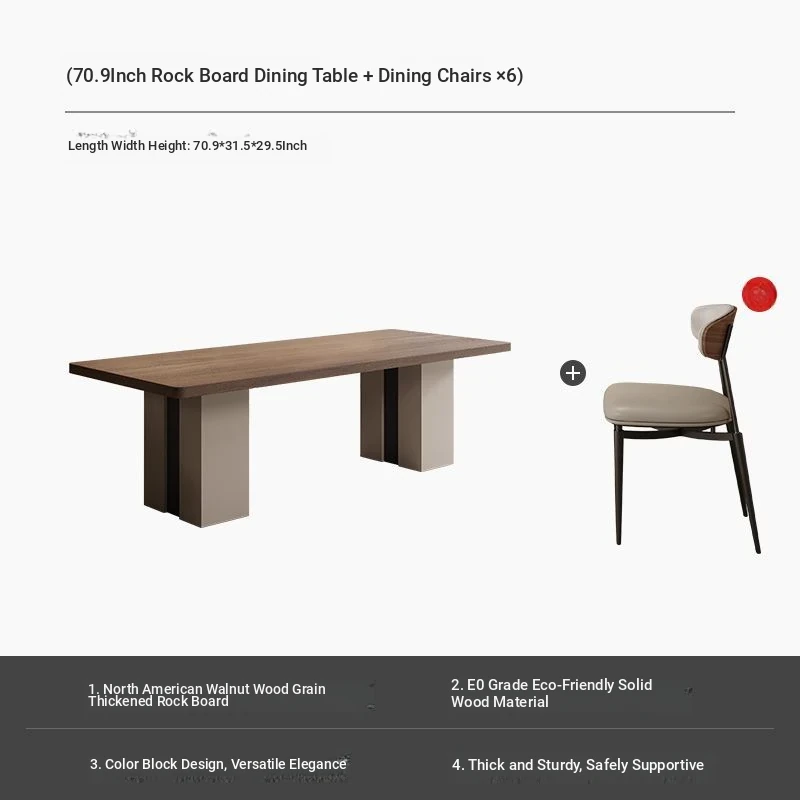 Elegant Minimalist Italian Dining Table and Chair Set - Rectangular High-End Walnut Wood Grain Dining Table for Home Use, Perfect for Small to Medium Spaces.