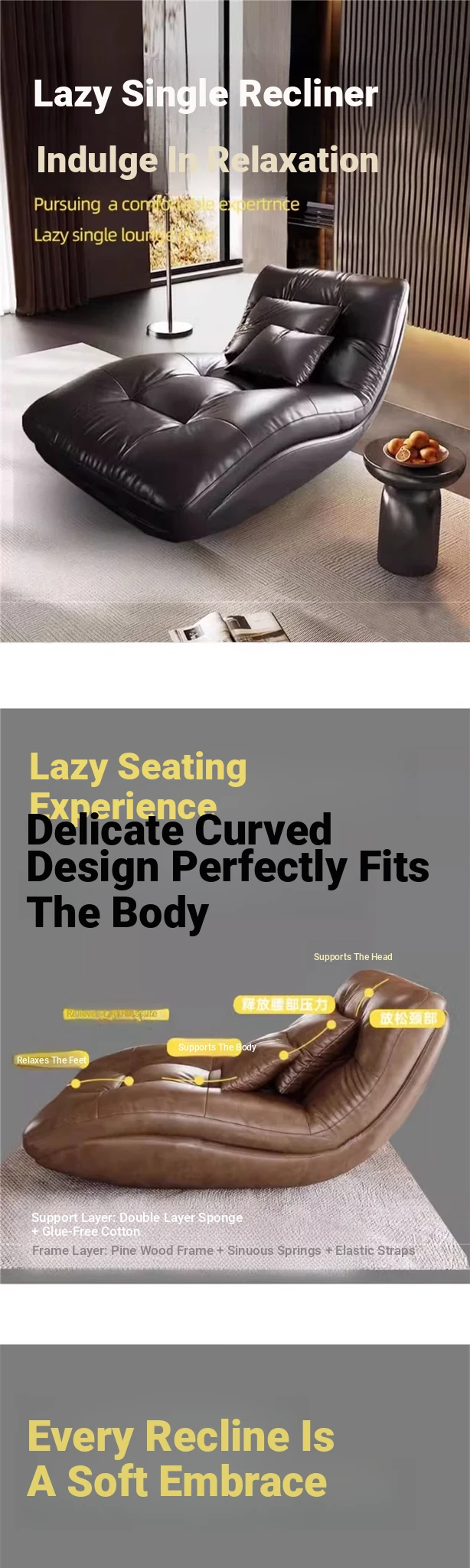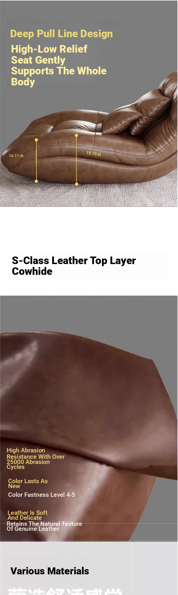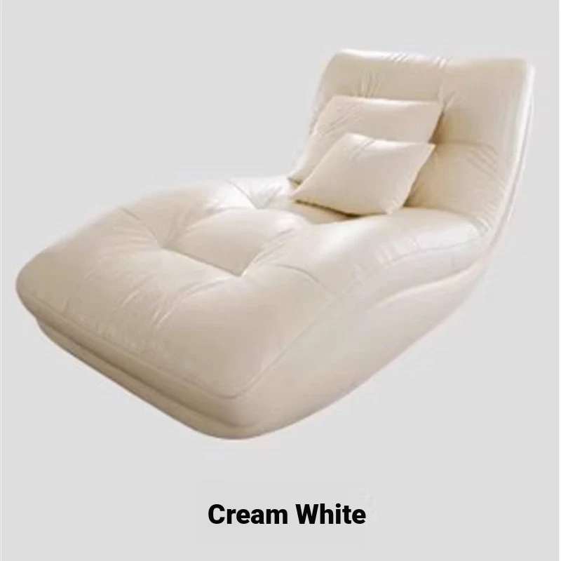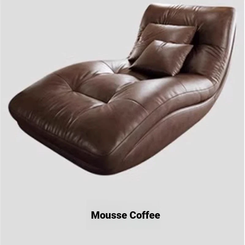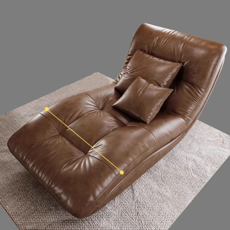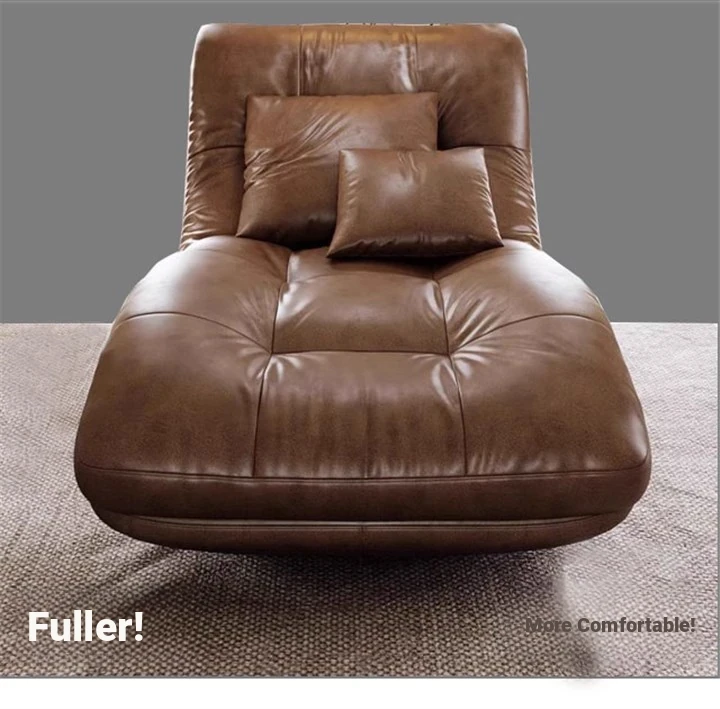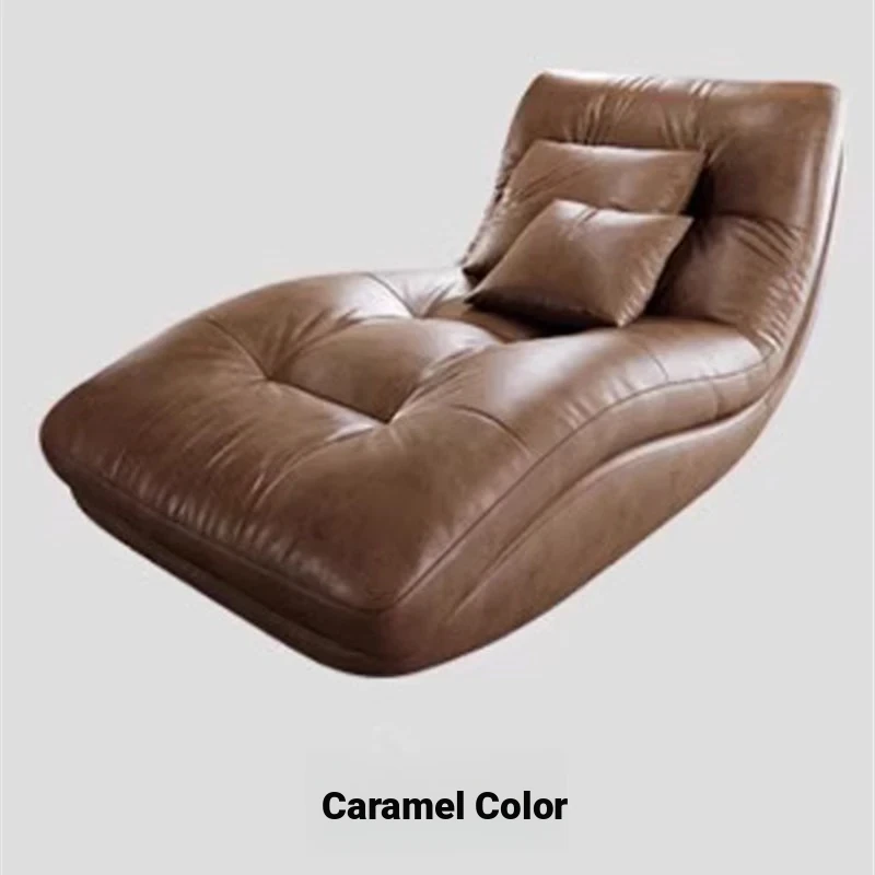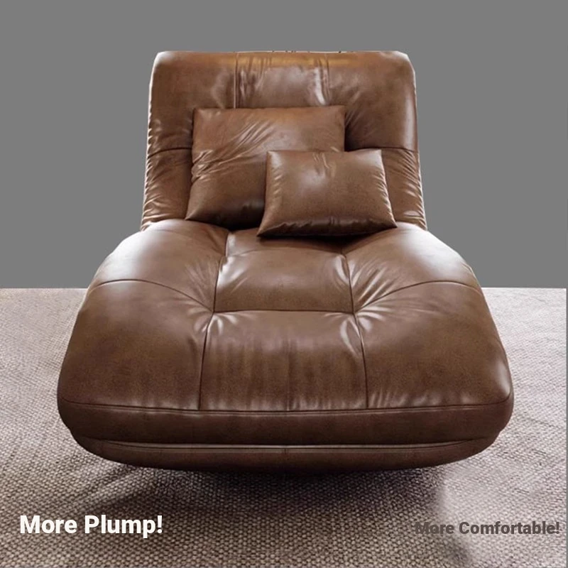 Genuine Leather Single Lazy Sofa Chair - Luxury Italian Style Chaise Lounge, Perfect for Relaxation and Napping, Trendy Design for Modern Living Spaces