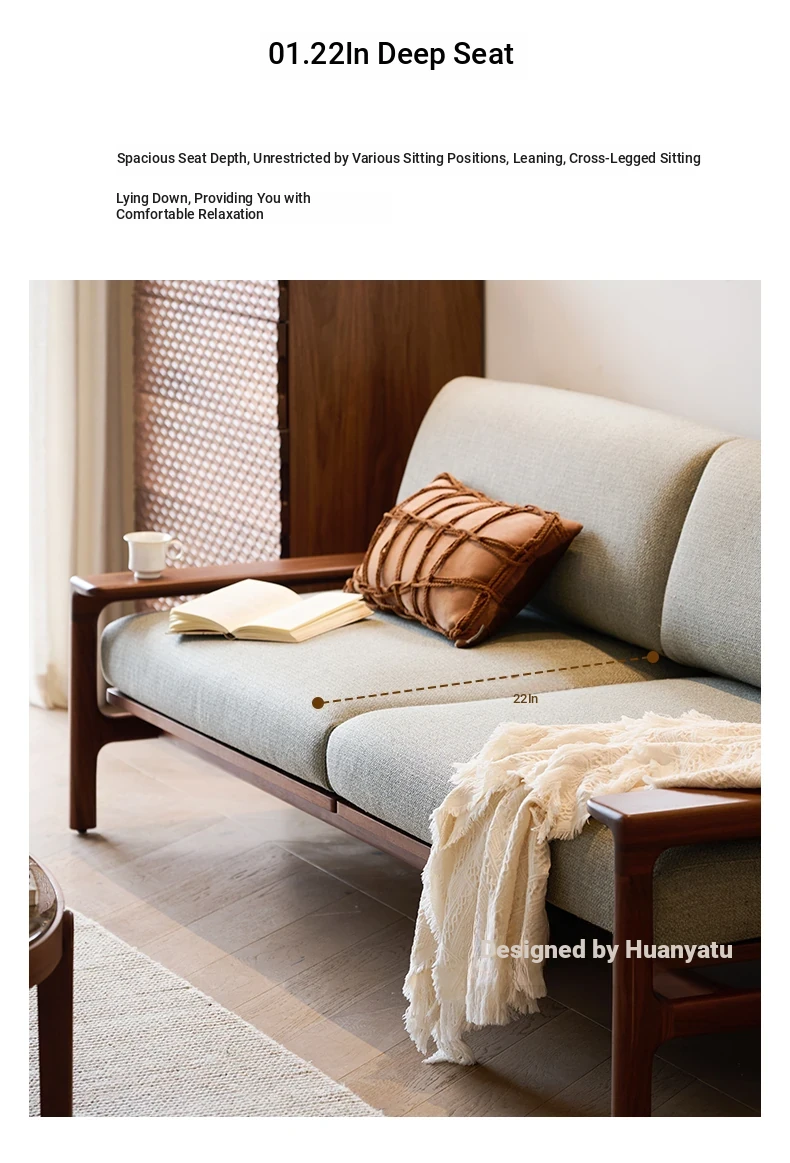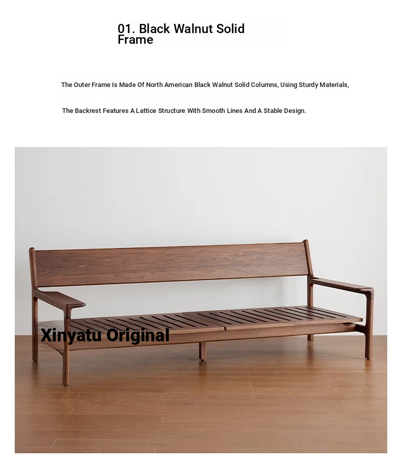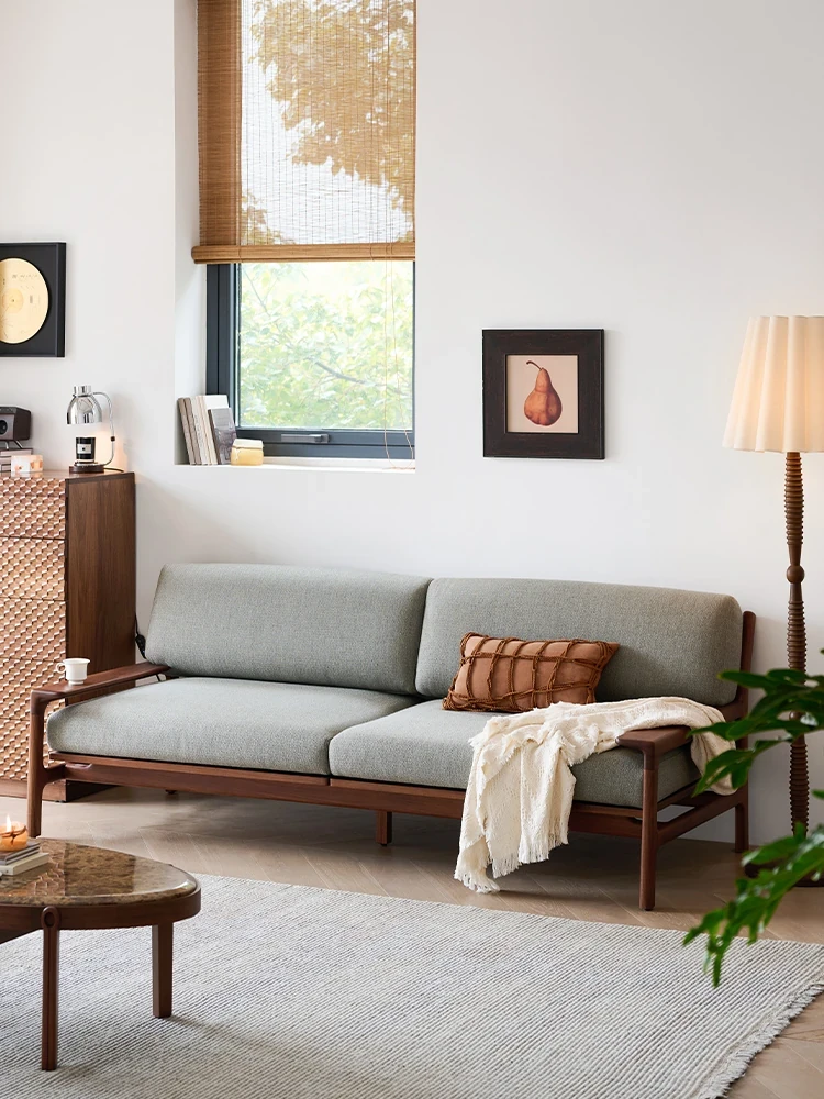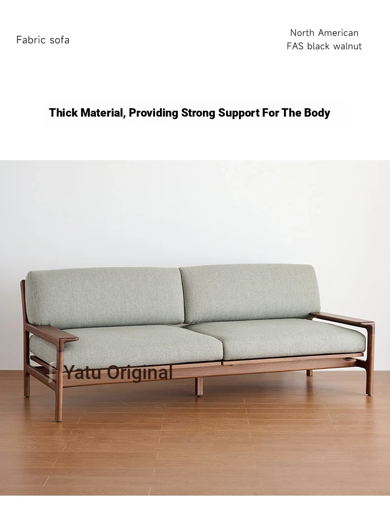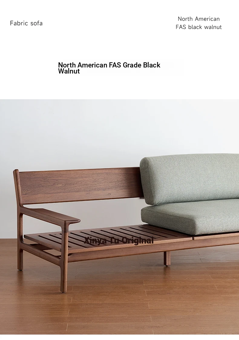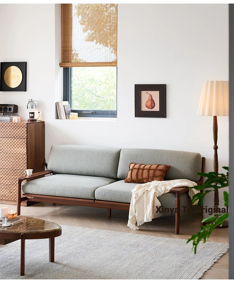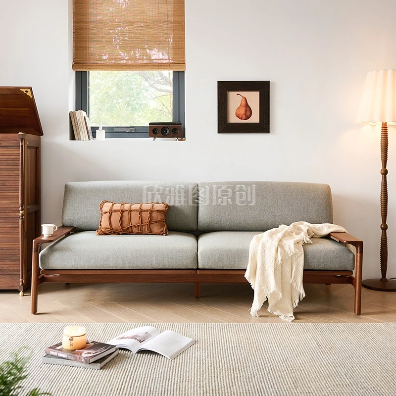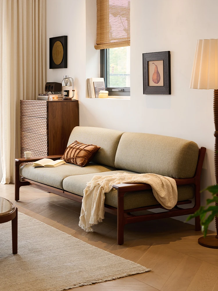 High-End North American Black Walnut Sofa - New Chinese Style, Solid Wood Fabric Sofa for Small Living Rooms, 3-Seater Design