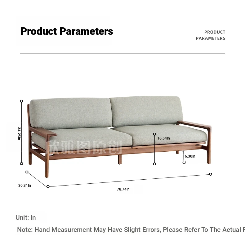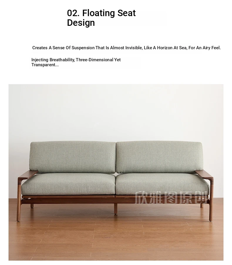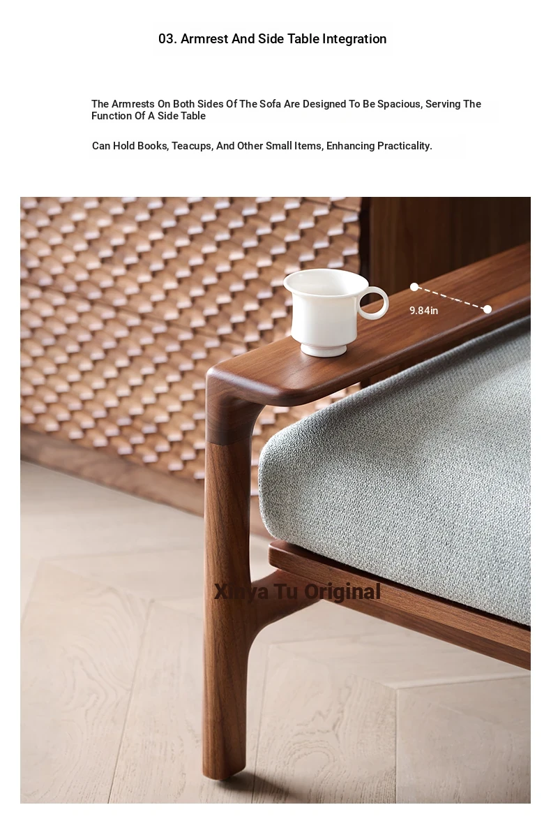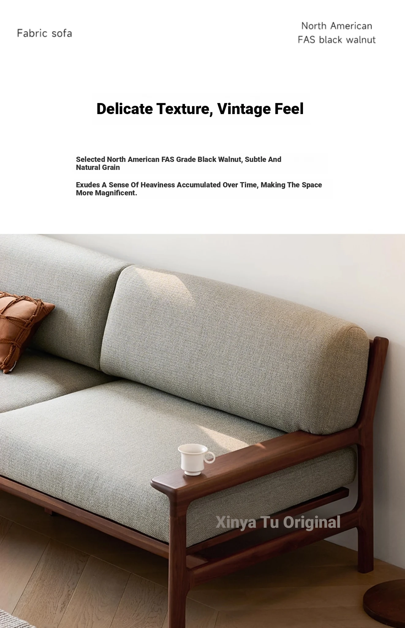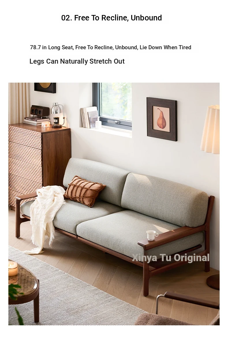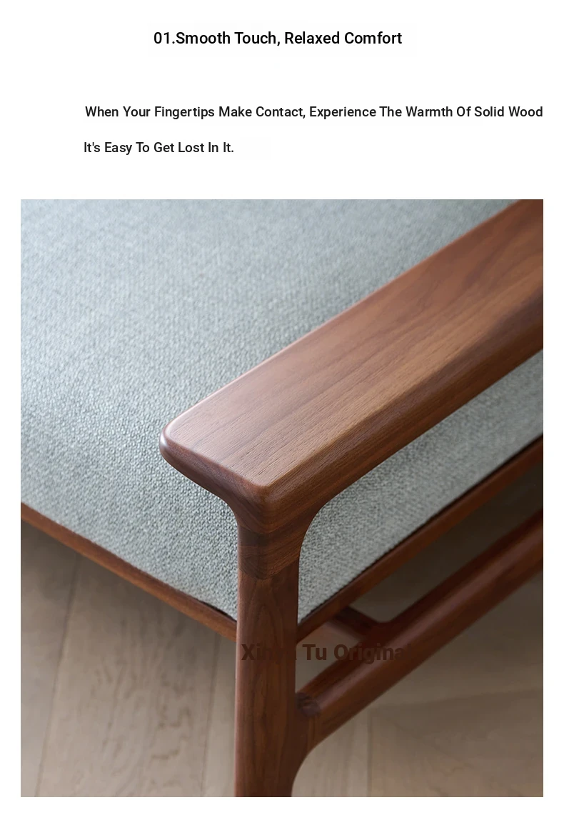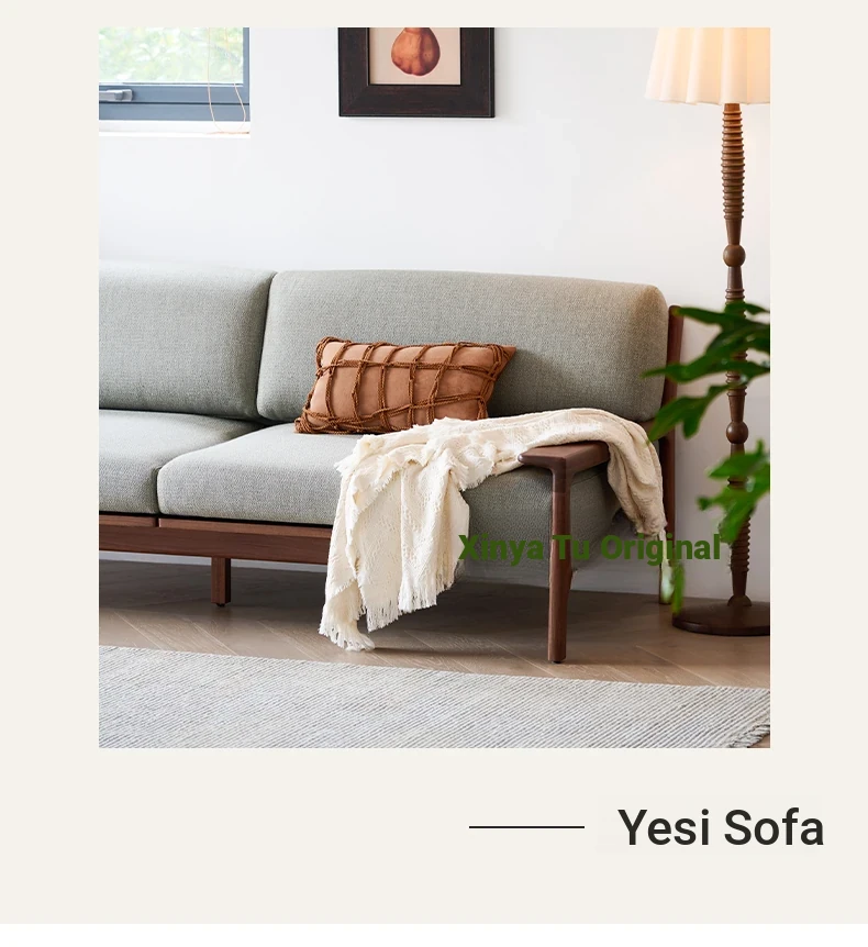 High-End North American Black Walnut Sofa - New Chinese Style, Solid Wood Fabric Sofa for Small Living Rooms, 3-Seater Design
