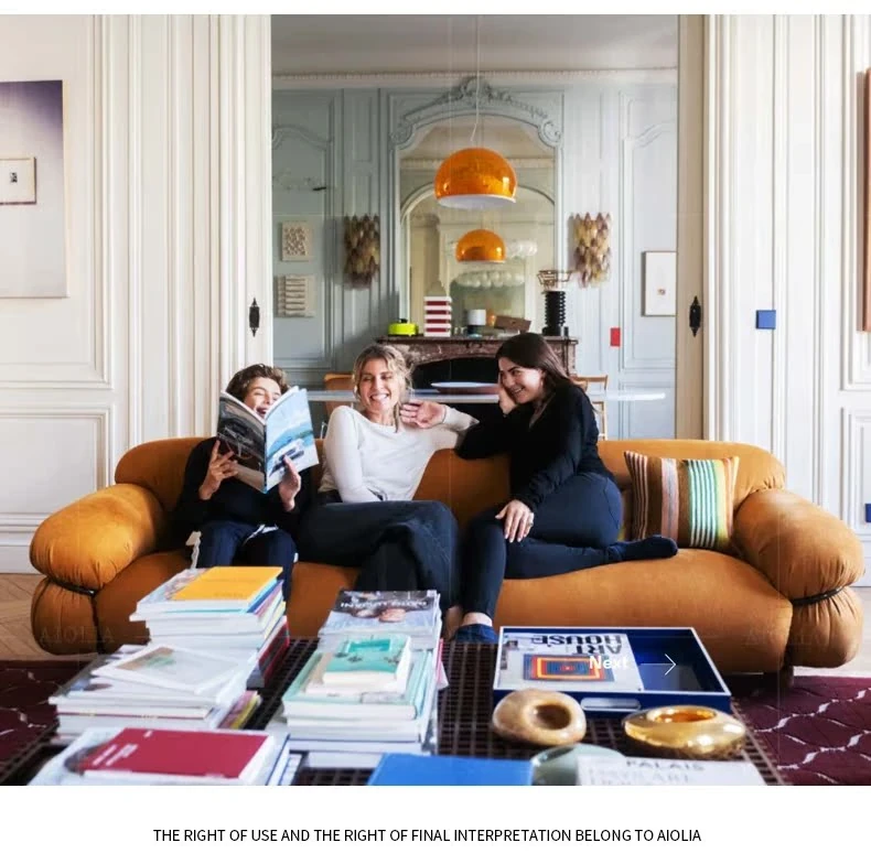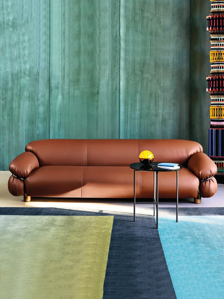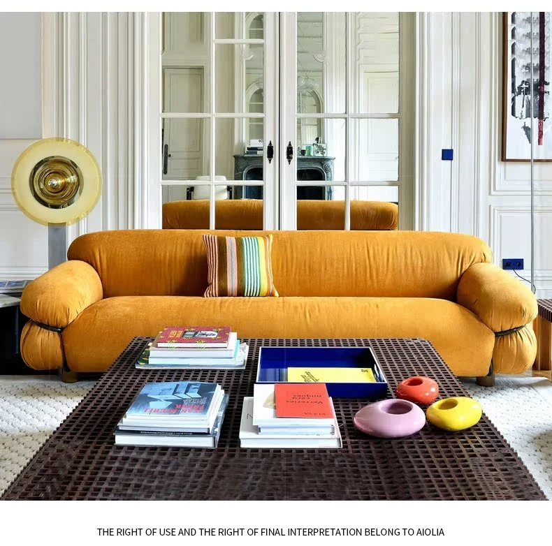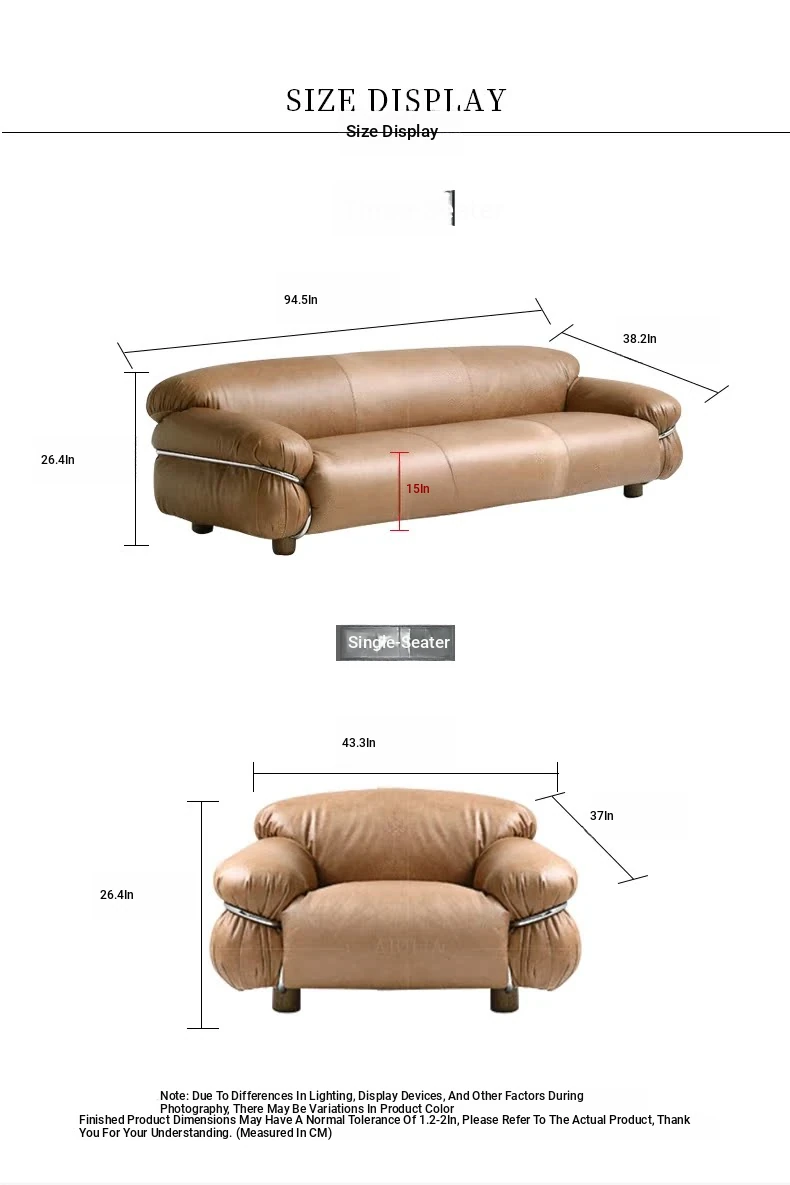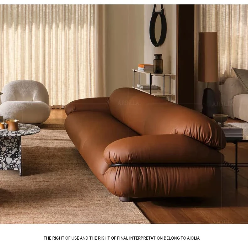 Italian Designer Full Leather Sofa - Premium Quality Top-Grain Cowhide, Stylish and Elegant 2.4m Vintage Orange Couch