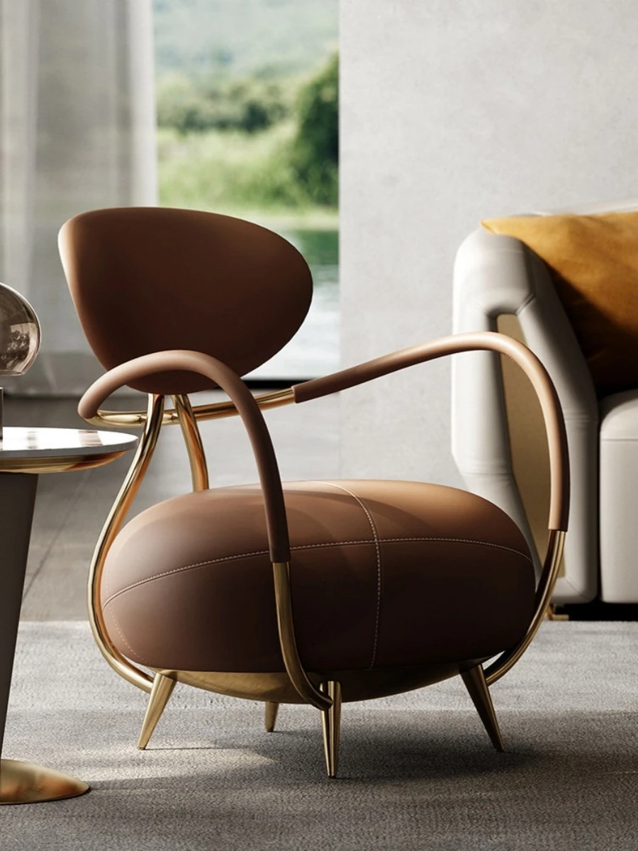Italian Minimalist Luxury Sofa Chair - Designer Tiger Chair for Living Room, Unique Creative Single Real Leather Leisure Chair