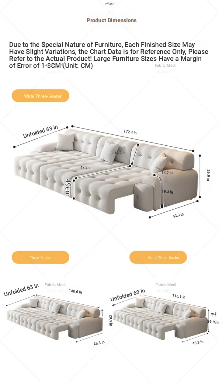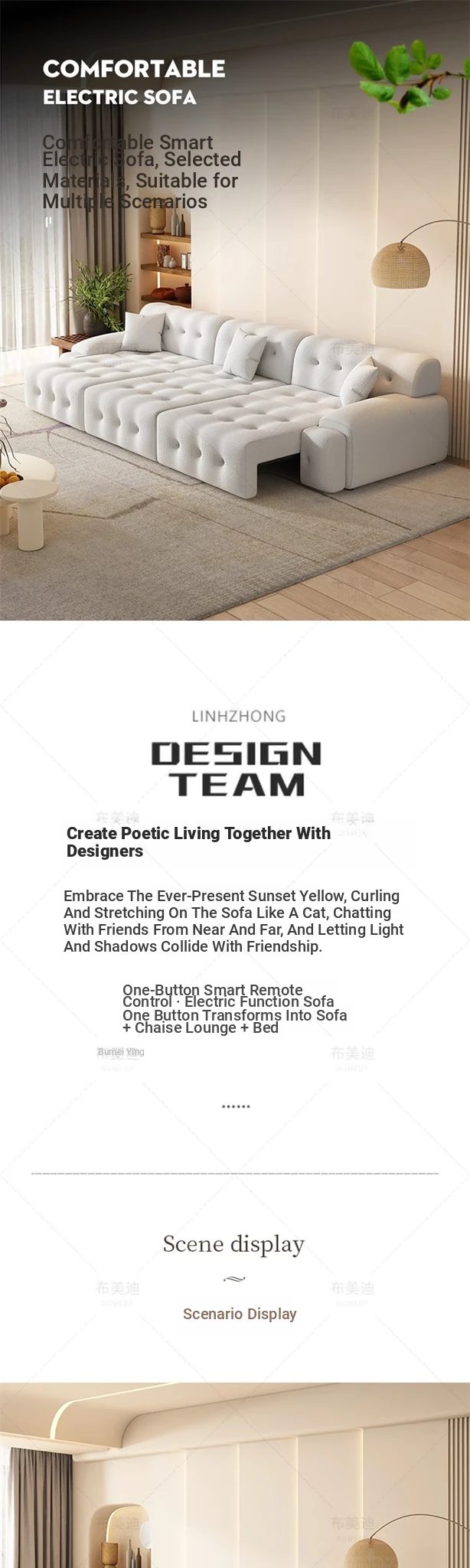 Italian Minimalist Rocca Electric Sofa - Trendy Compact Three-Seater with Adjustable Pull-Out Design for Small Spaces