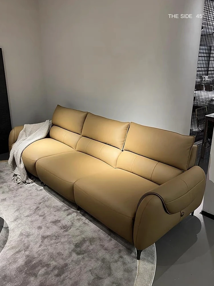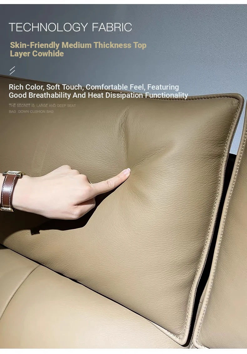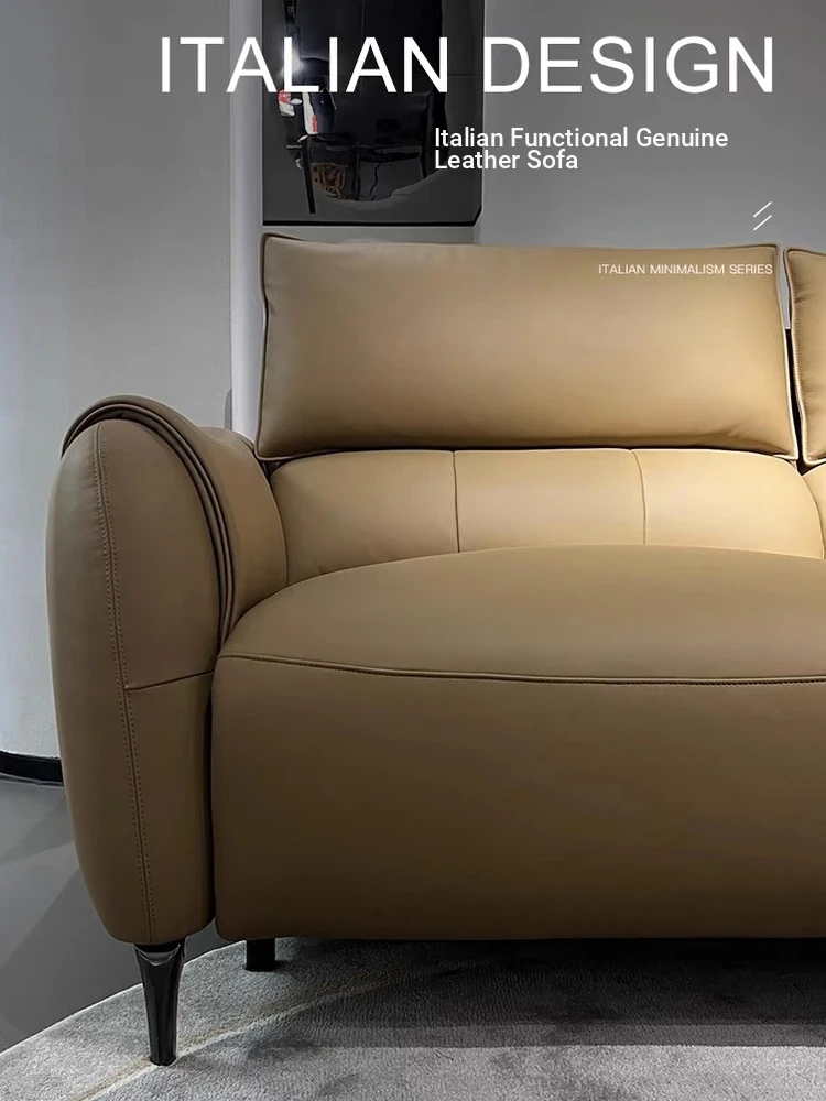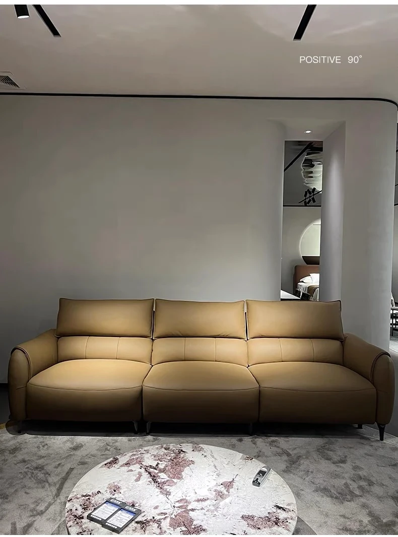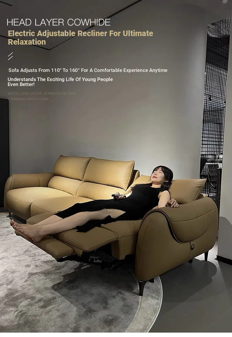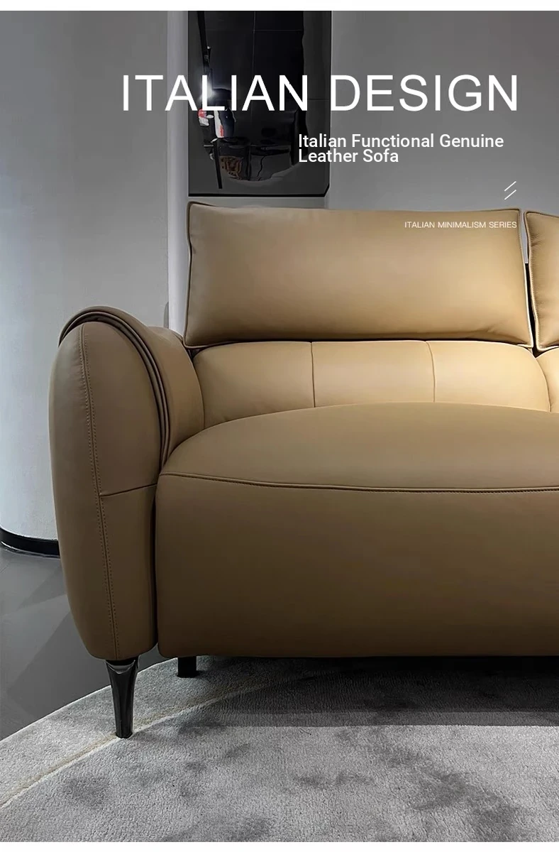 Luxury Electric Reclining Sofa in Genuine Top-Grain Leather - Italian Minimalist Design for 3-4 People with Plush Down Filling