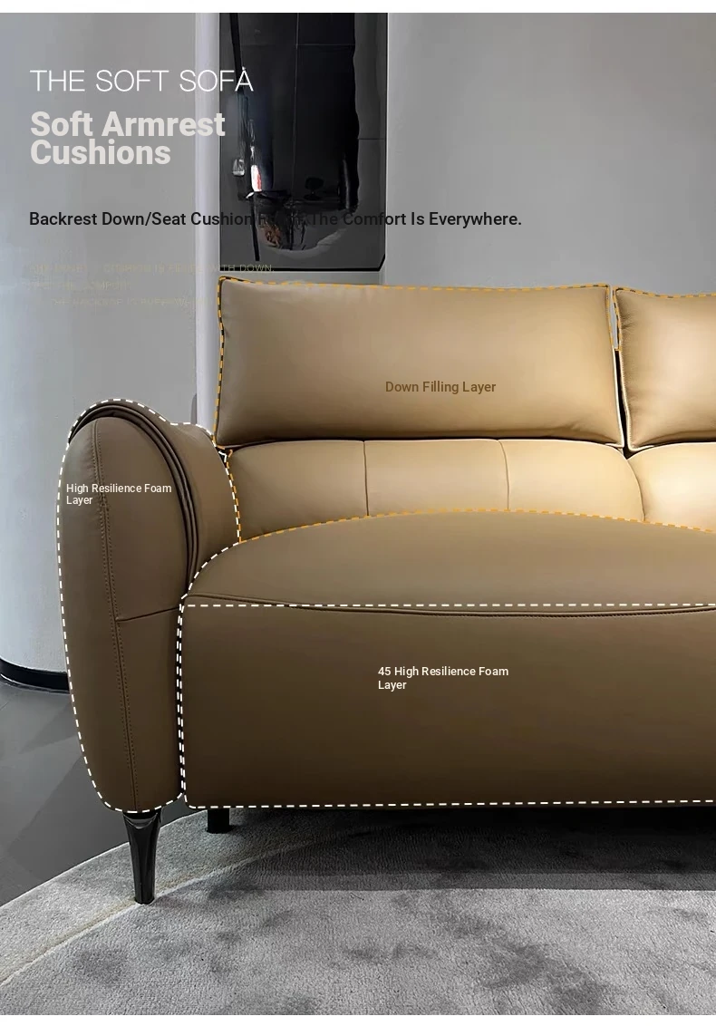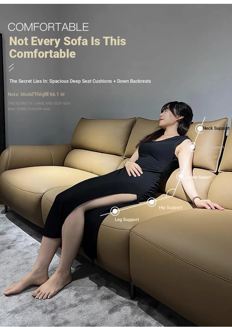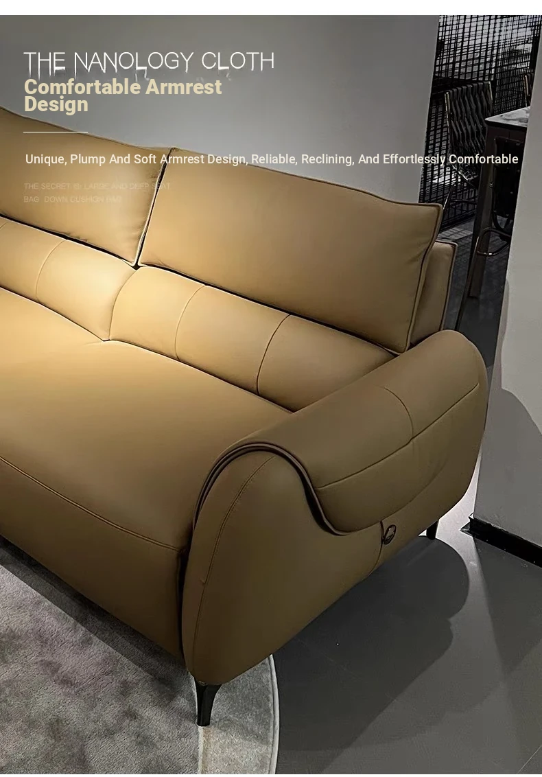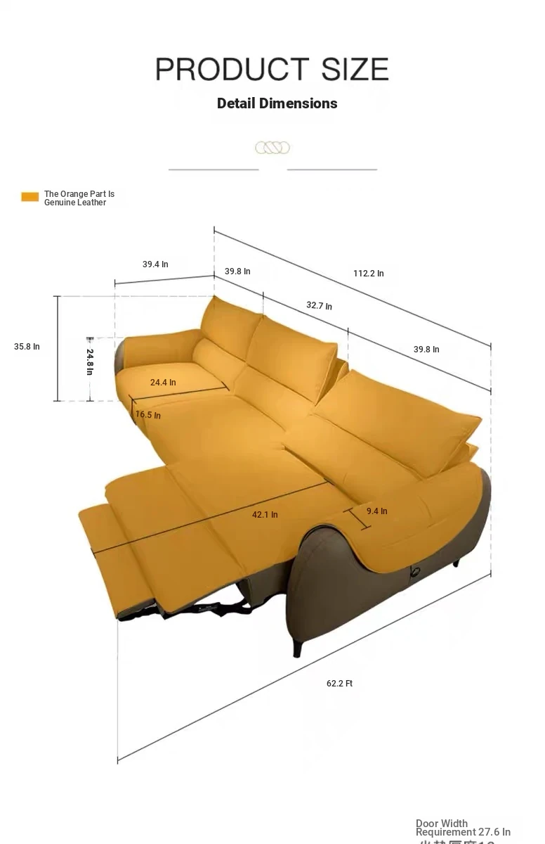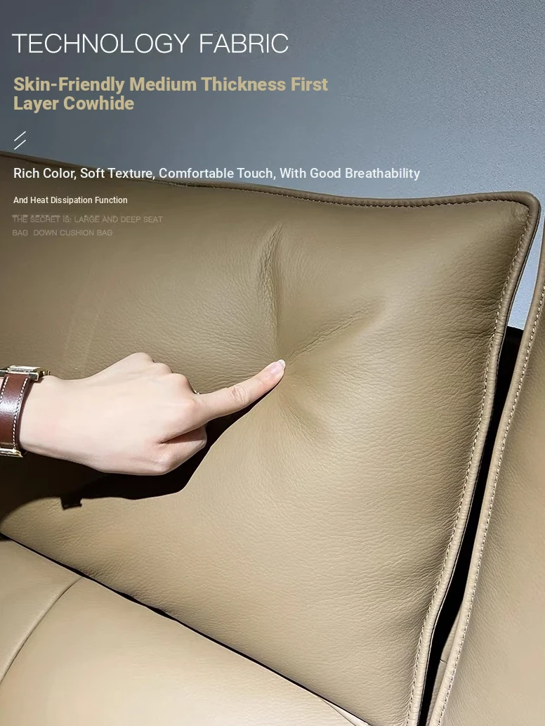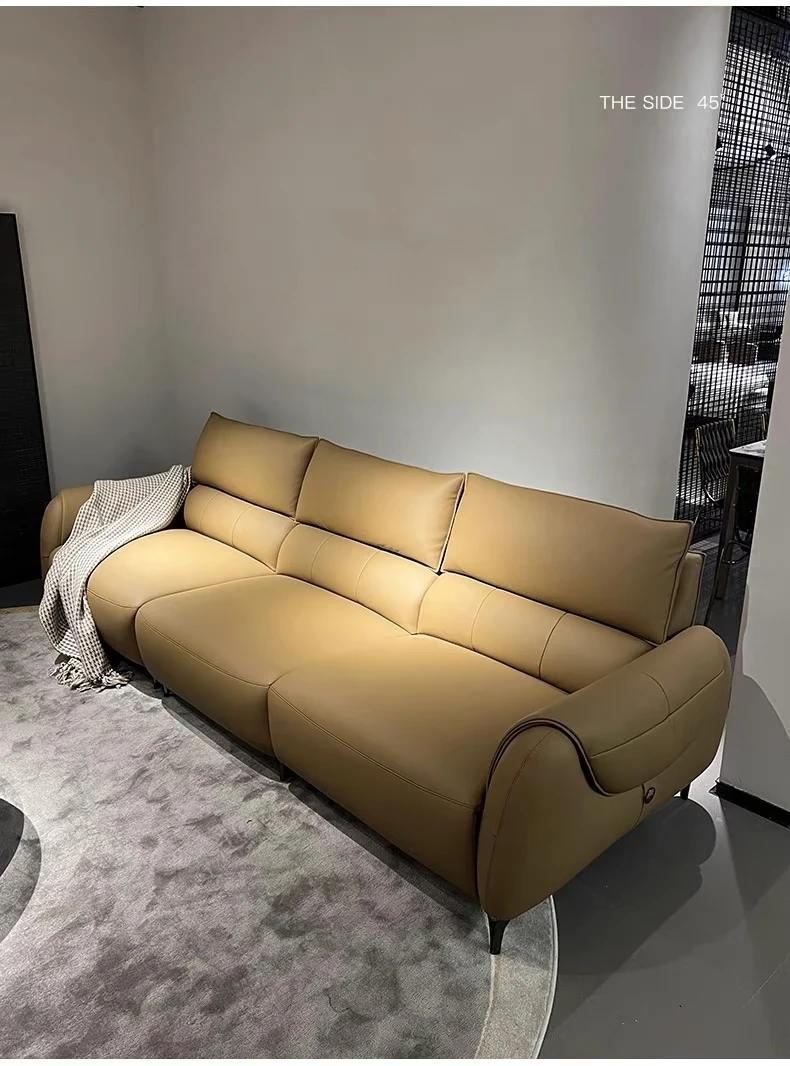 Luxury Electric Reclining Sofa in Genuine Top-Grain Leather - Italian Minimalist Design for 3-4 People with Plush Down Filling
