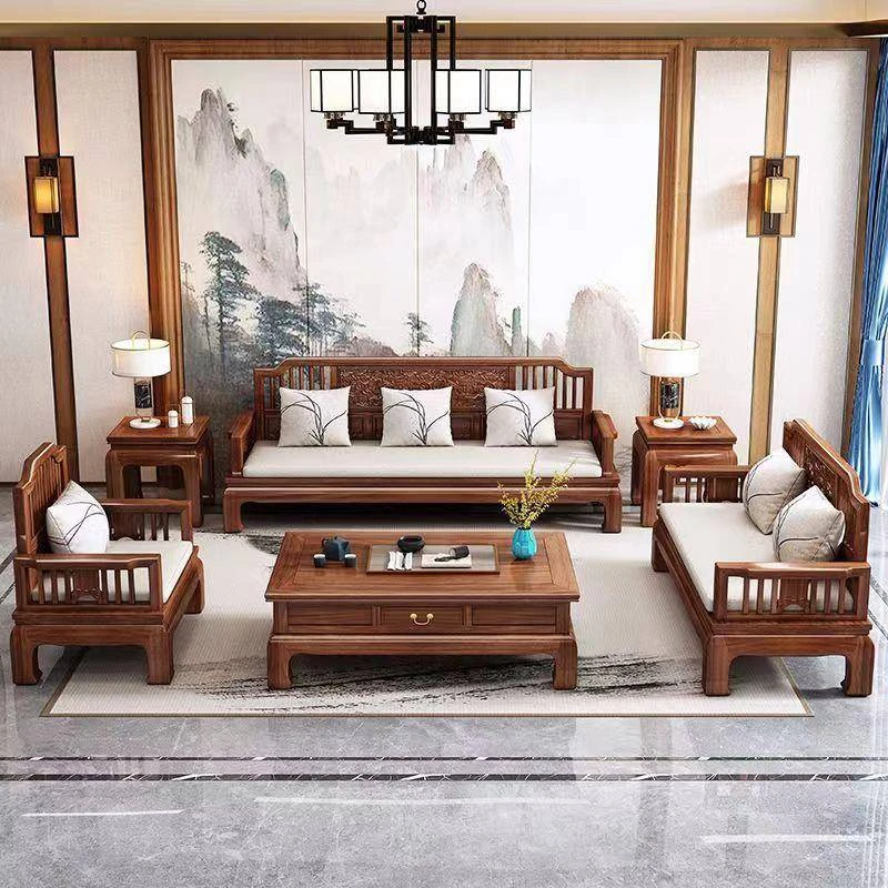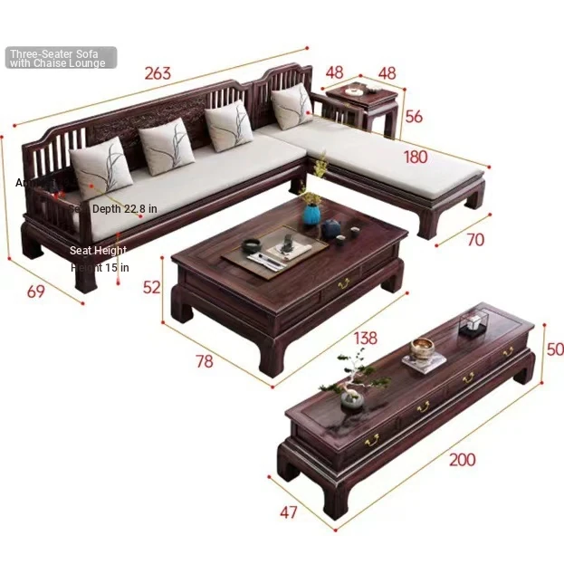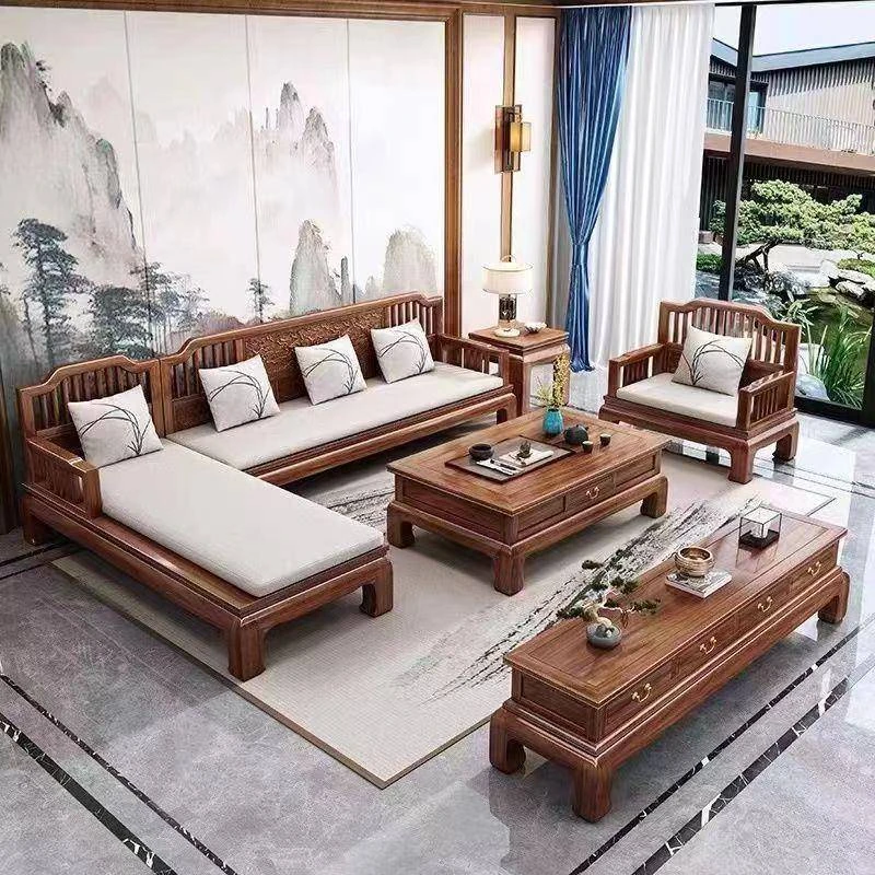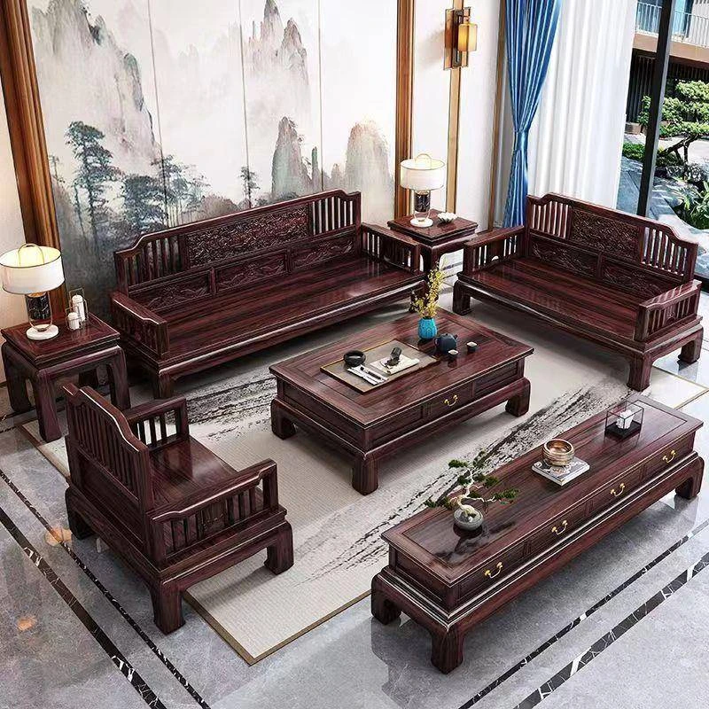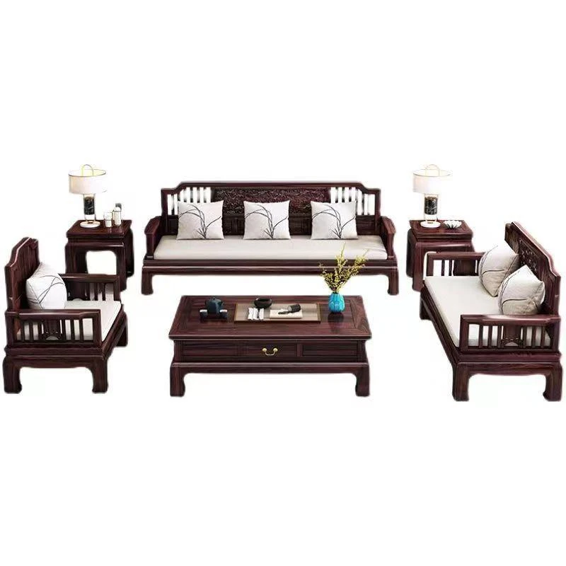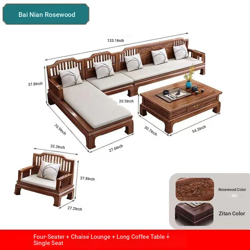 Modern Chinese Style H1F2X Rosewood Solid Wood Sofa Set - Elegant Antique Carved Corner Sofa for All Seasons, Combining Simplicity and Sophistication